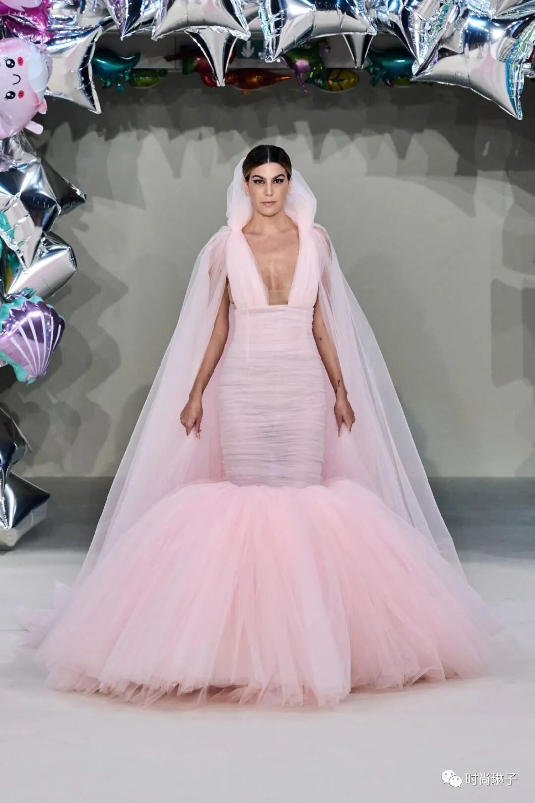 巴黎出生的意大利名媛Bianca Brandolini身穿梦幻的粉色美人鱼裙压轴出场,为这场大秀画上了一个完美的句号。