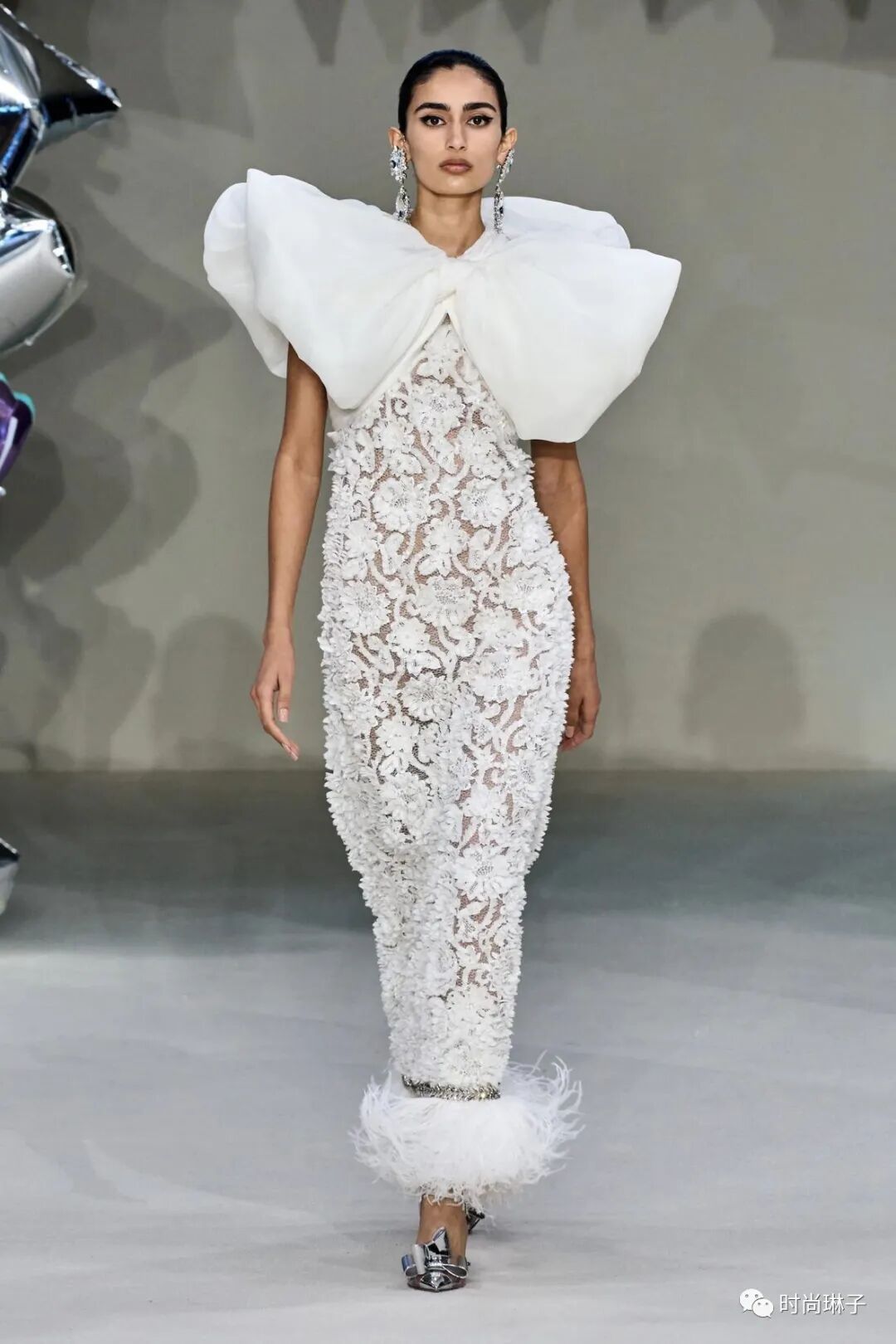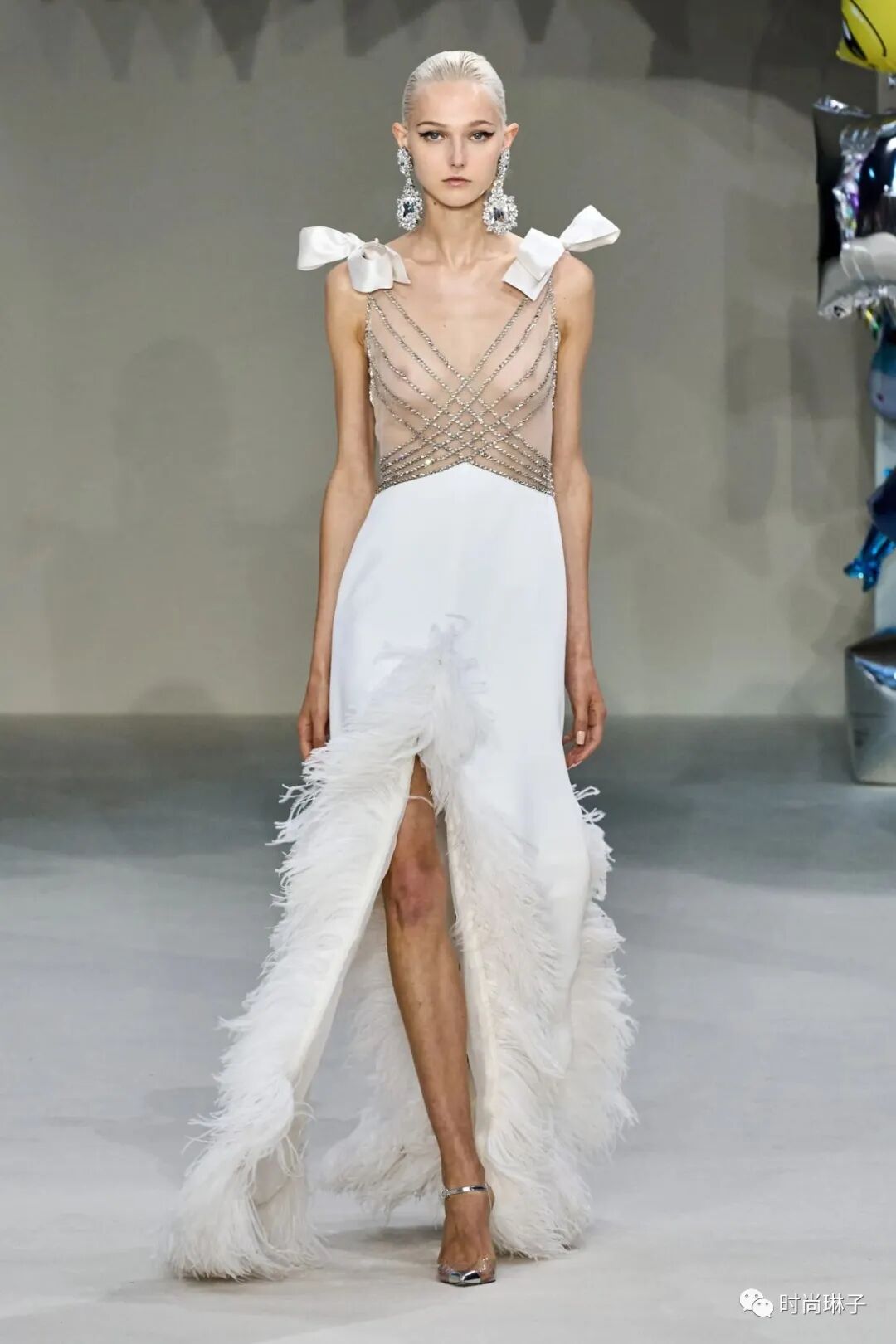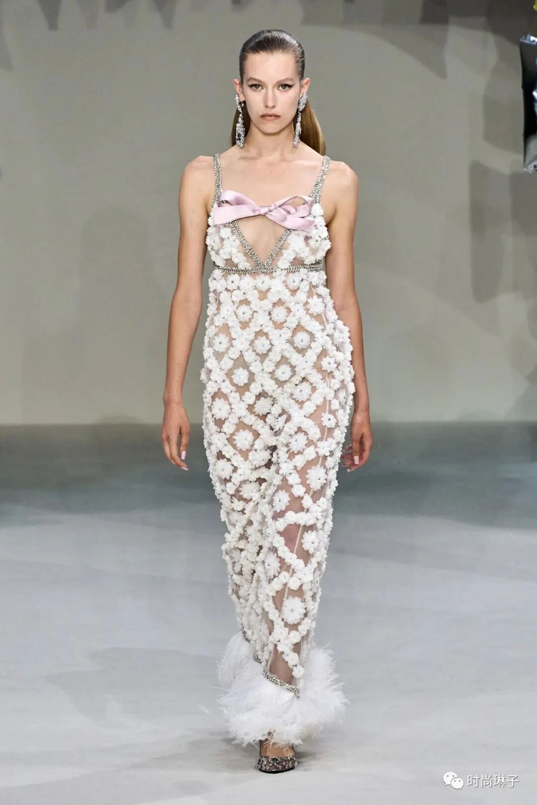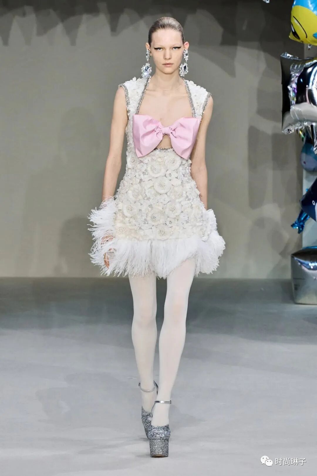 Giambattista Valli 2022 秋冬高级定制系列是品牌发布的第23个高定系列。系列中由蝴蝶结,羽毛,花朵,水晶亮片……点缀的礼服裙,带我们走进了充满童真的唯美梦境。