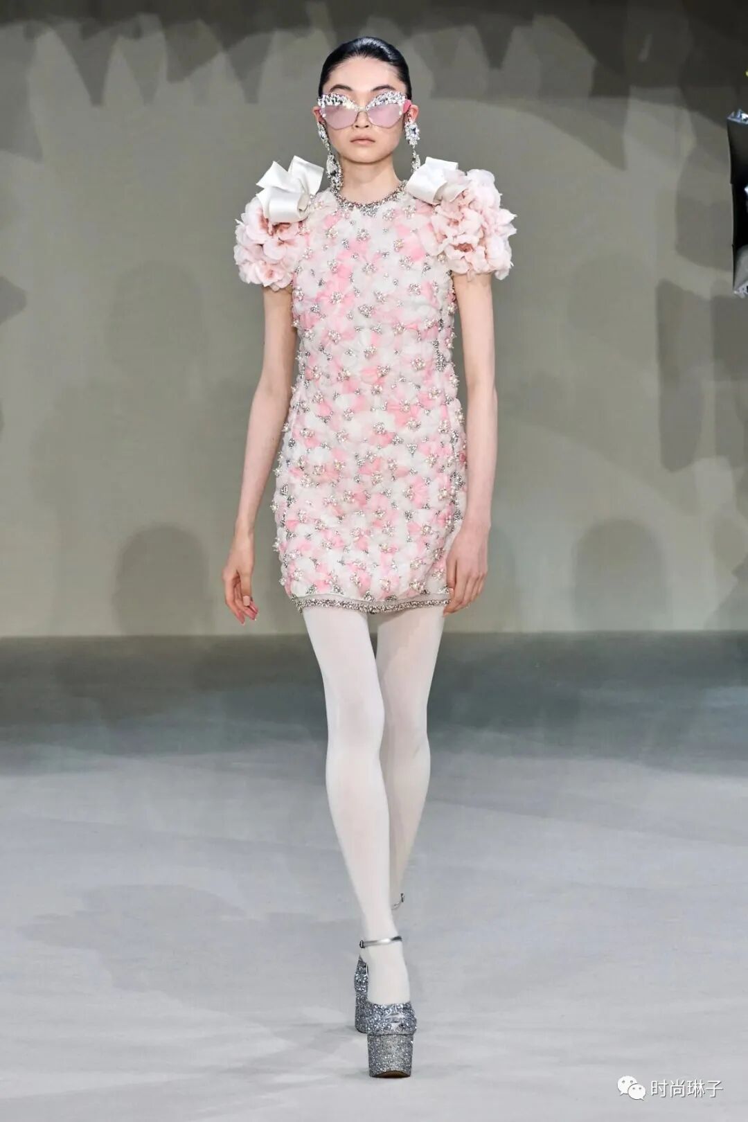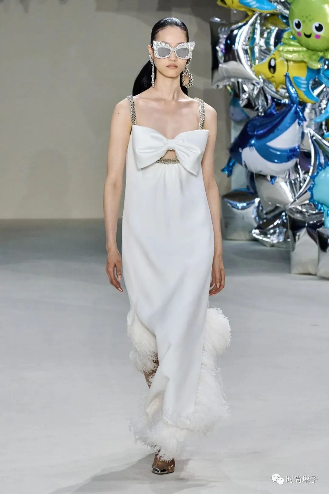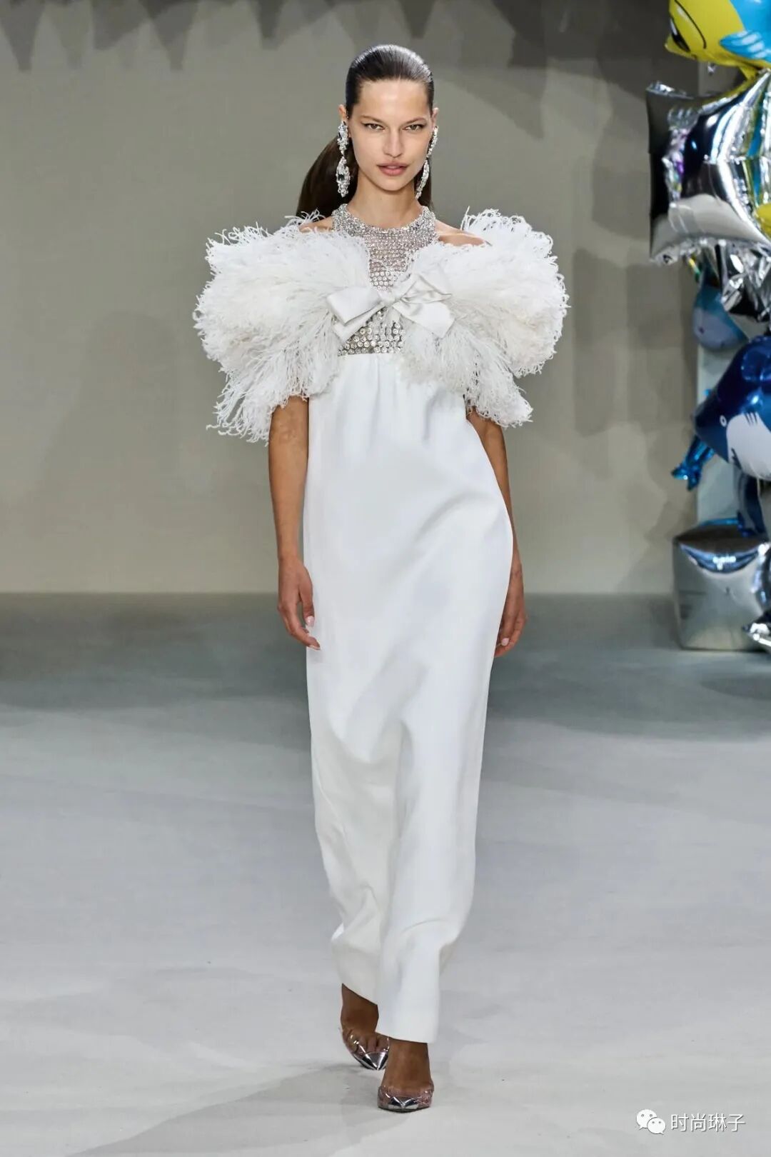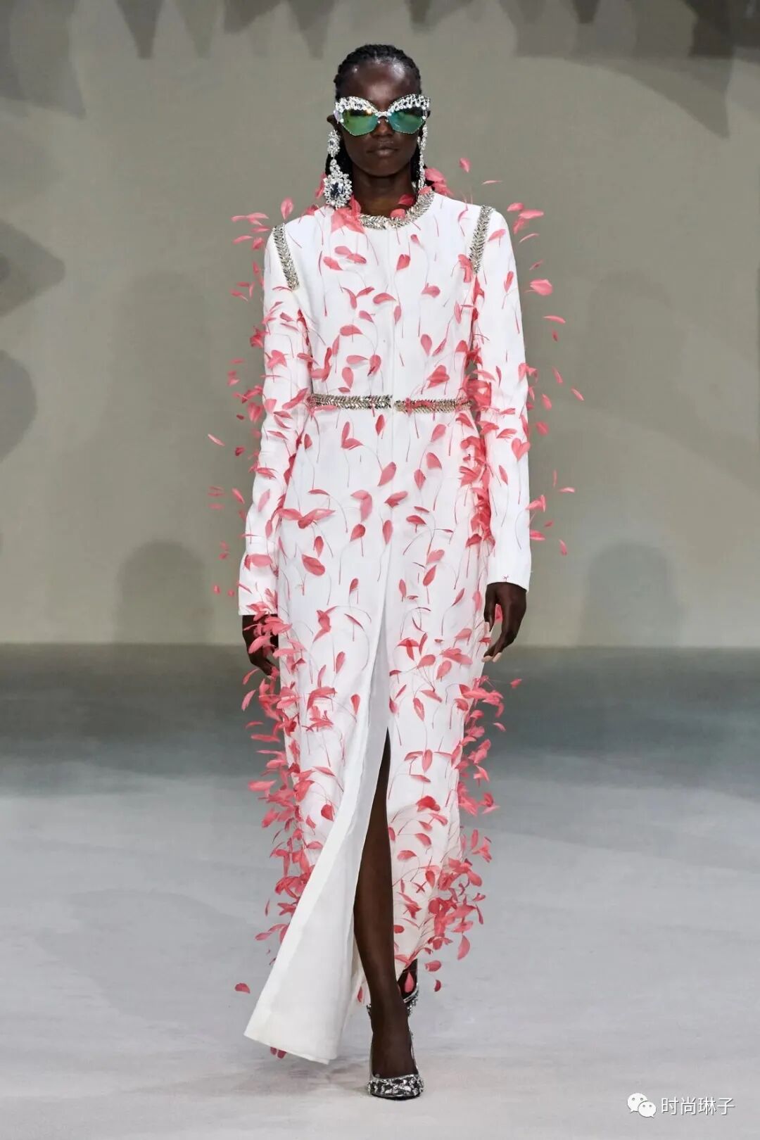 Giambattista Valli 2022 秋冬高级定制系列是品牌发布的第23个高定系列。系列中由蝴蝶结,羽毛,花朵,水晶亮片……点缀的礼服裙,带我们走进了充满童真的唯美梦境。