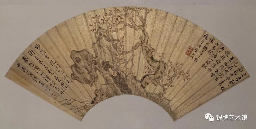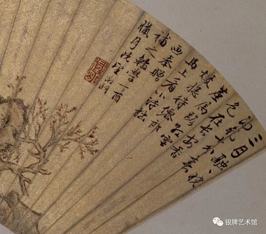 文徵明以工绘山水画著称,偶尔绘人物和兰竹,以杏树为主题的画作仅此一幅扇面画,非常难得。