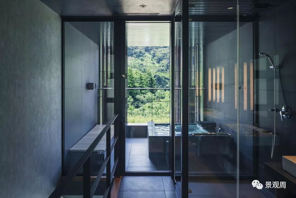 台湾的另一个魅力便是对空间纯熟而不拘谨的运用,我们在设计时则活用了这些空间的利用方法。在客房栋,我们以台湾那错综复杂的大街小巷为灵感,设计出凹凸的墙面,使建筑物体现出更具自由感的外貌。而前台接待处则设计了一个如同美术馆一般宽阔的空间,使宾客能够从到达时便开始自然而然地进入一个非日常的空间。我们在所有的客房都设有露天温泉,而且大多数客房都是复式楼型,将浴室等设置在了单独的一层。这样,除了感受着微风浸泡温泉的时光,还有在起居室或卧房中度过的悠闲的时光,宾客能够在一次的下榻中同时享受到两种不同的度过方式。