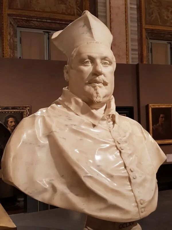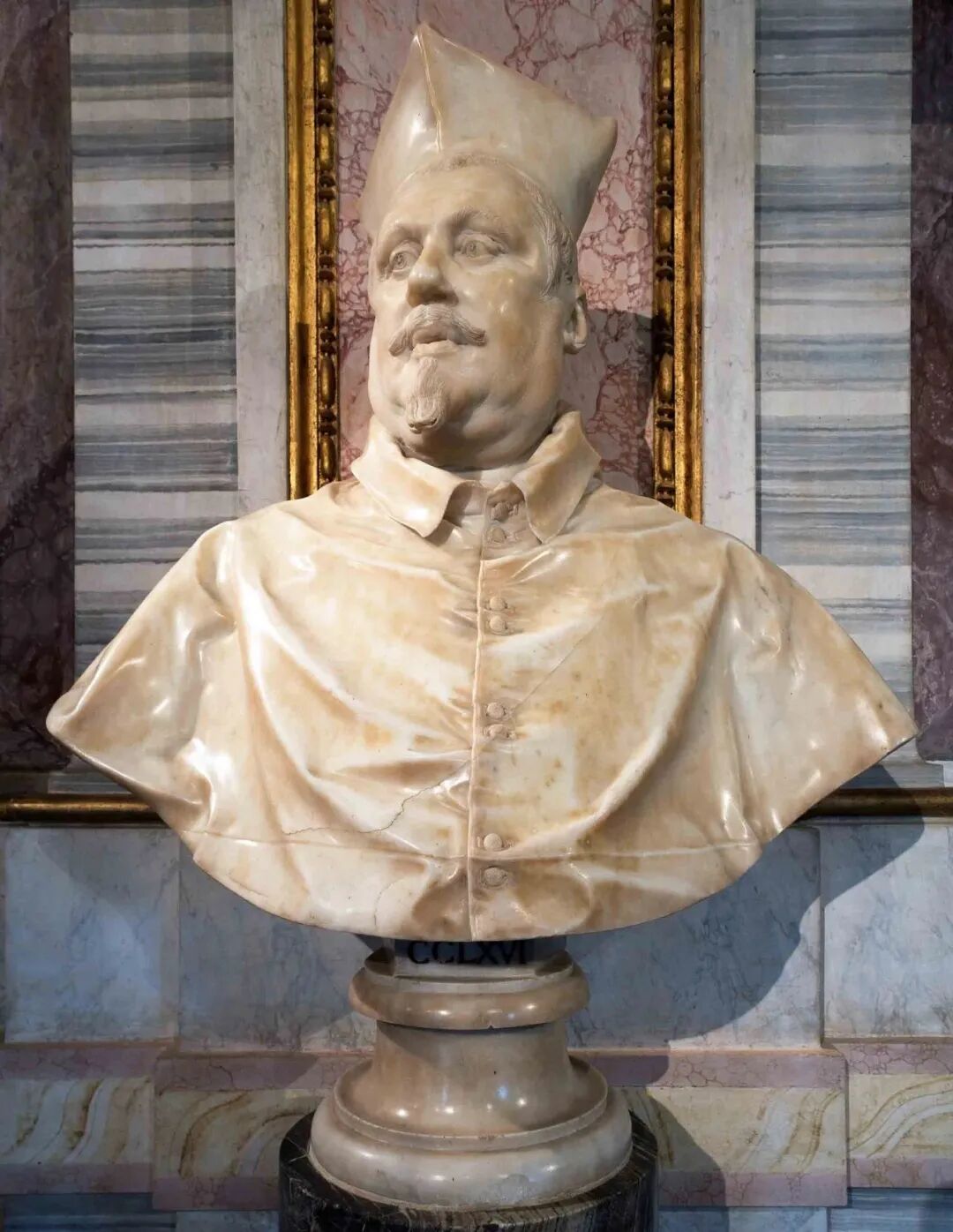 今天给大家介绍意大利巴洛克代表艺术家之一-贝尼尼的大理石雕塑《红衣主教斯皮奥涅·博尔盖塞胸像》,收藏于意大利罗马博尔盖塞博物馆,该博物馆就是以这位主教的名字命名的。