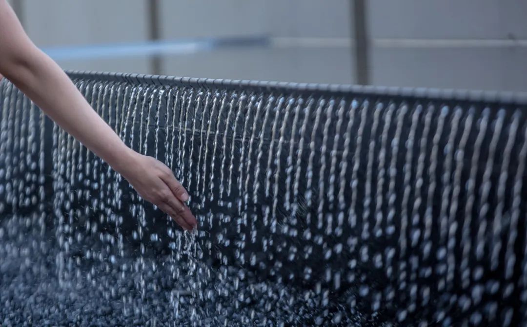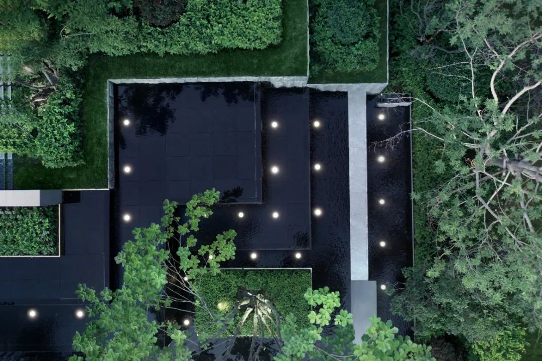 极具现代工艺的流水板将水引流而下,凹凸不平的版面使流速得以减弱,不再是过往云烟,而是细水长流。
