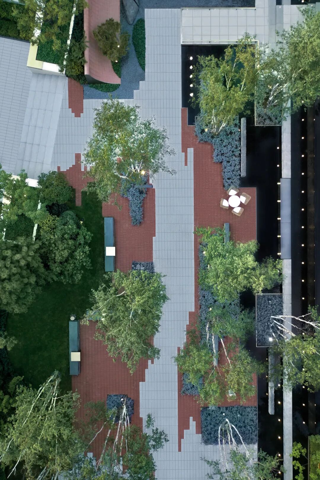 整个空间不会以用力过猛的方式打造,为了协调整个建筑视觉的风格,景观在空间陈列、植物配置,雕塑点缀上找到一种空间的平衡,最后空间呈现历史文化的重焕新生。