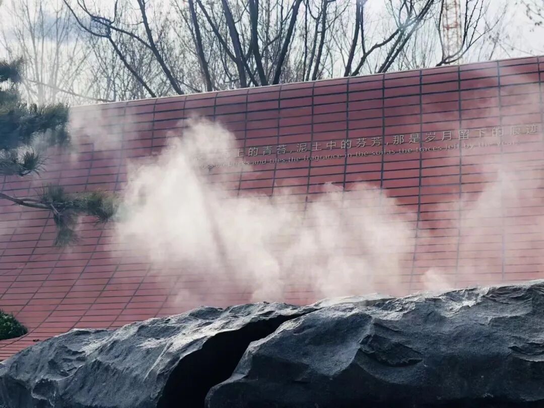 ②因展示区在冬季开放,水景无法跌水,流水石未跌水时出现色差较大,经内部讨论在流水石外表面刷一层增艳剂,在不破坏石材本色的同时保证石材湿面的效果,与压顶石材颜色一致。
