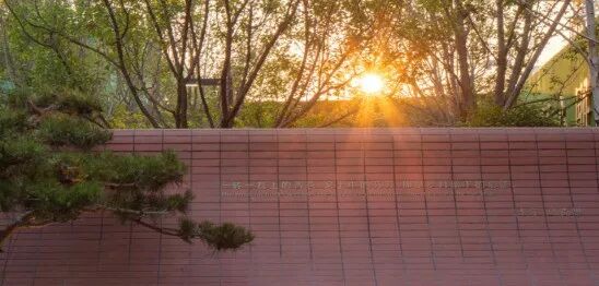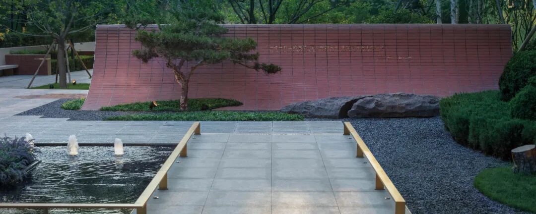 红色弧形景墙面镌刻上金属文字,这是岁月印记最直观的体现,疑似过往的红在向我们传达它过去的故事。