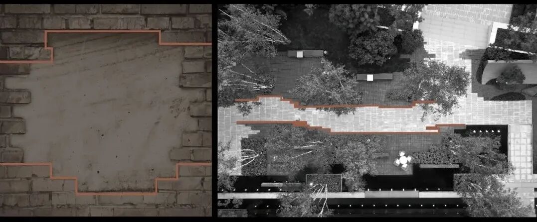 穿过建筑的城市时空对话的关系,一种“新与旧”的更新变化,核心场景围绕建筑的布局展开,因此运用极为克制的处理方式,让所营造的景观空间功能与美感统一,在浏览过程中与空间产生历史记忆的共鸣,让通行、休憩、浏览、观景等各类活动自在发生,并不断发现更多的趣味。