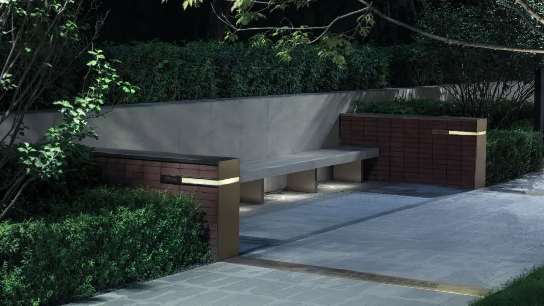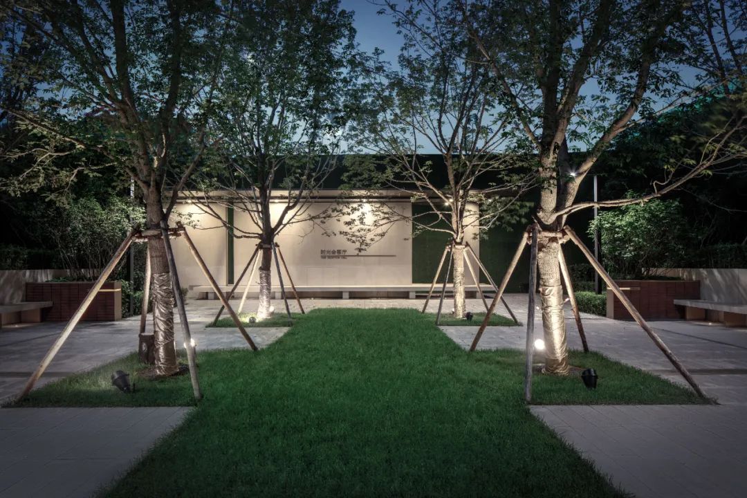 廊架、树木形成简洁丰富、自然生态的休憩空间;轻,是感受现场后内心本能的一种需求,时光会客厅采用极简的手法,营造出这种物理介质的暗示,塑造了一种明暗光影和轻盈的空间姿态。