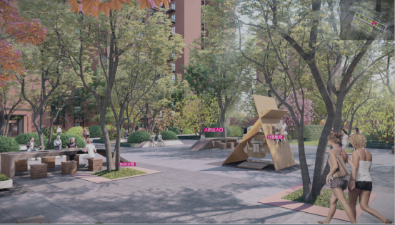 设计师用景观的手法设计书写场地生活和时代故事,施工人员在空间场地的上呈现设计方案 ,经过业主、设计、施工方三方共同协作,我们的场地得以精彩呈现。