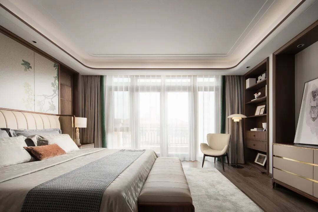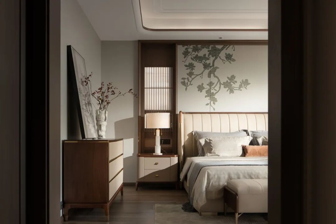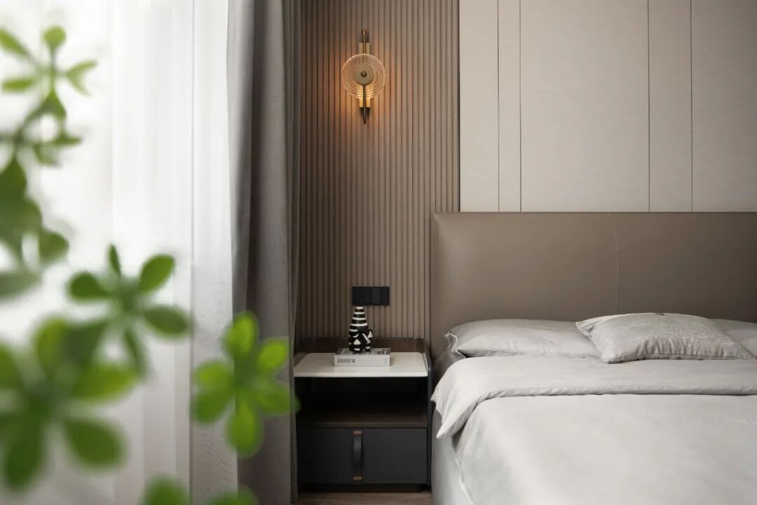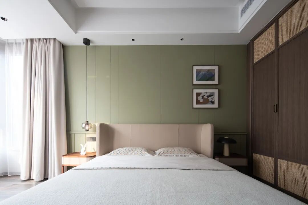 设计师用最自然和温和的材质去营造卧室空间。柔软的地毯,温润的实木,以及柔和的灯光,给人一种放松和惬意感。