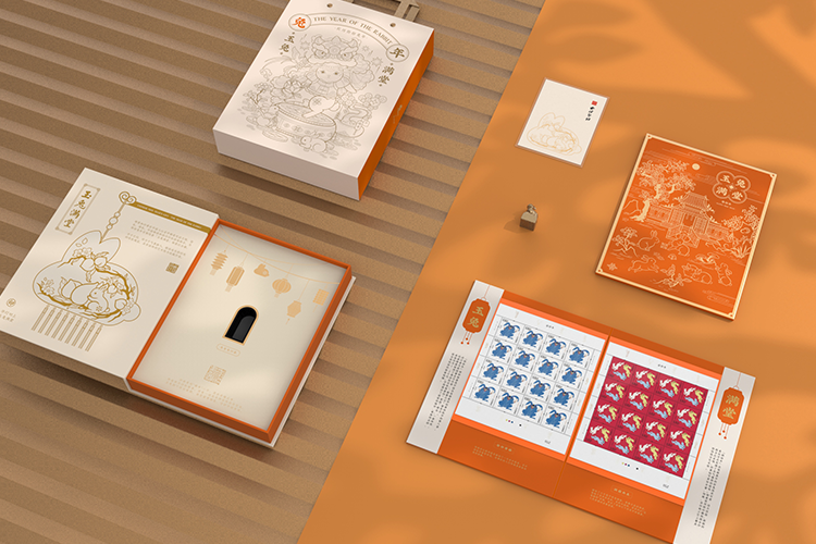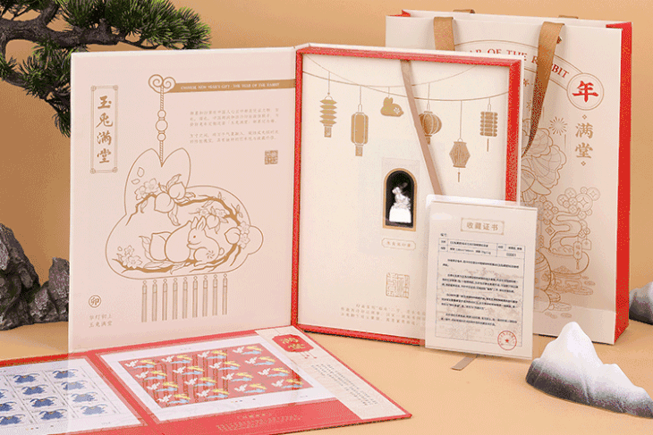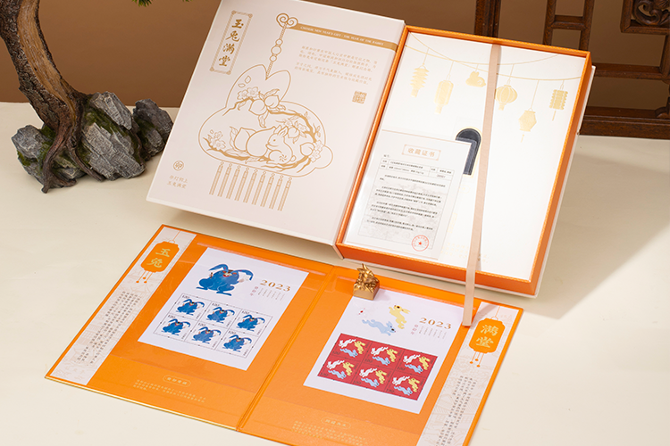 内含西泠纯铜兔牛印章一枚和《癸卯年》特种邮票小版票套(2张)