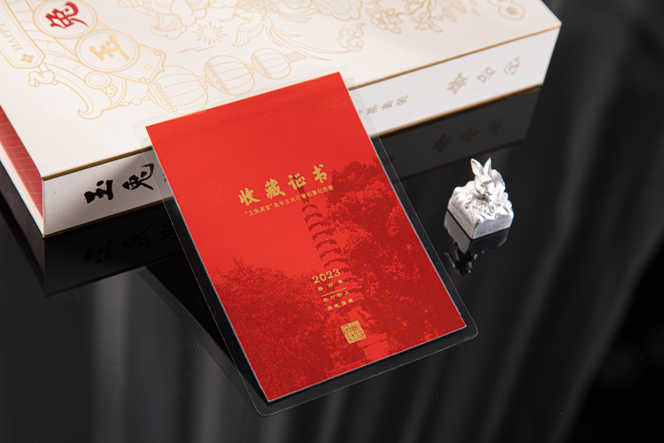 内含西泠足银兔纽印章一枚和《癸卯年》特种邮票大版票一套(2张)。