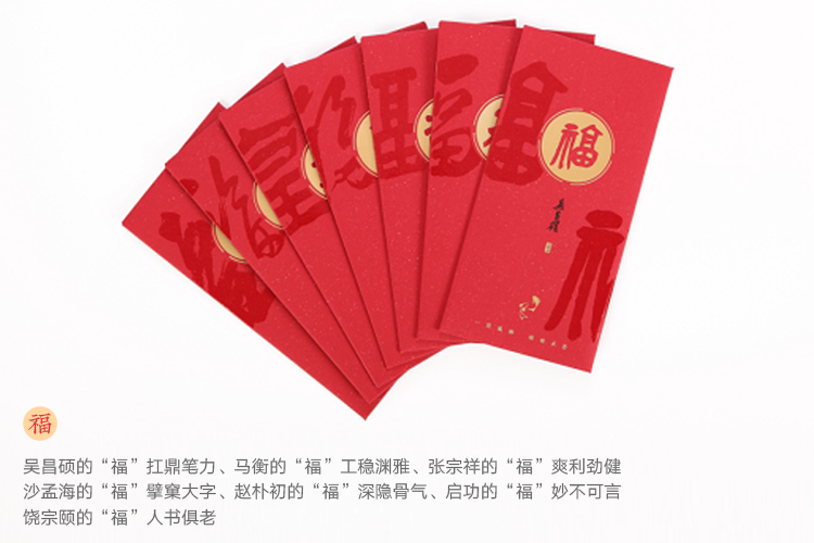 △七福到红包 | 谐音“祈福“,臻选西泠印社七任社长手写“福”字,融入红包之中,将福气带给每一个有福之人。