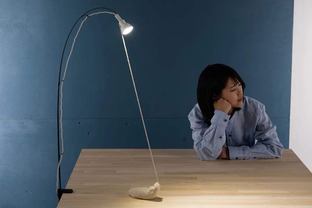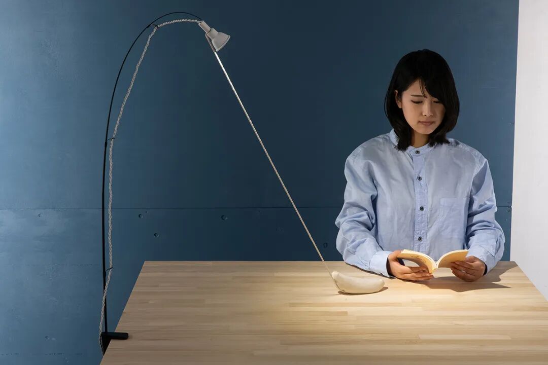 当鱼上钩时,鱼竿会弯曲。而我想通过这款FISH ON!灯去营造鱼上钩的那种紧张与跃动感。沙包就像上钩的鱼,移到哪,光便打到哪。