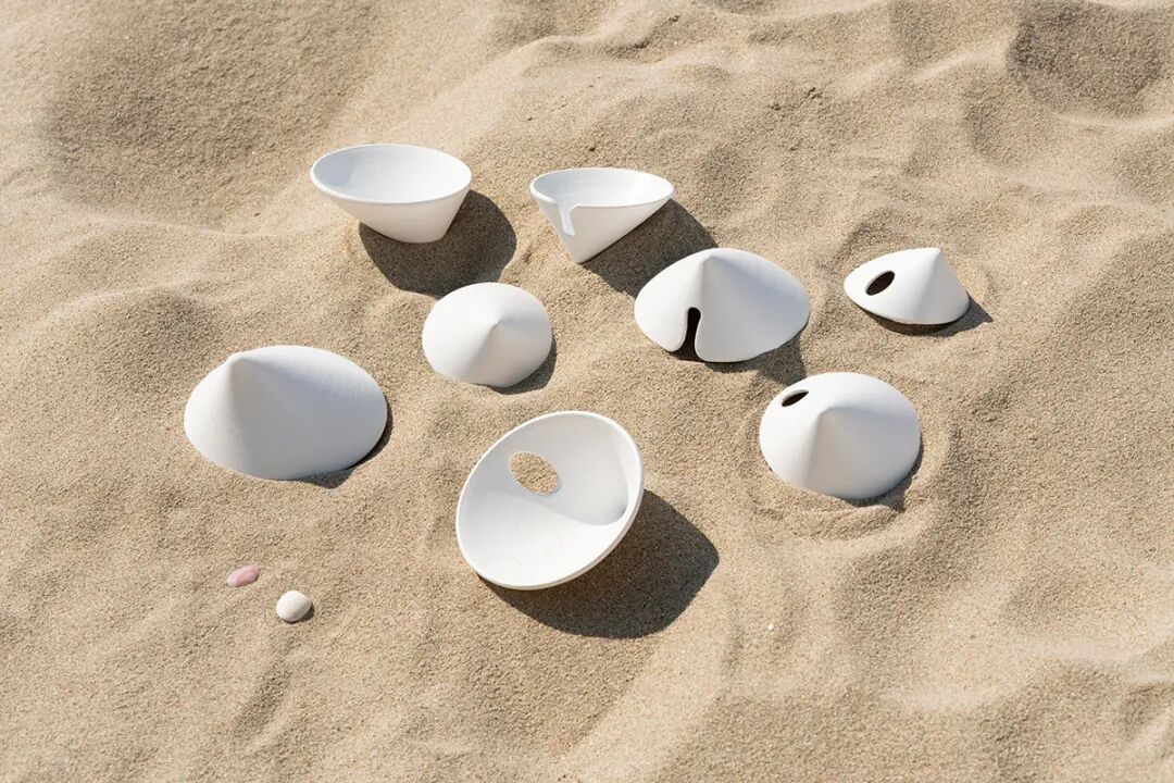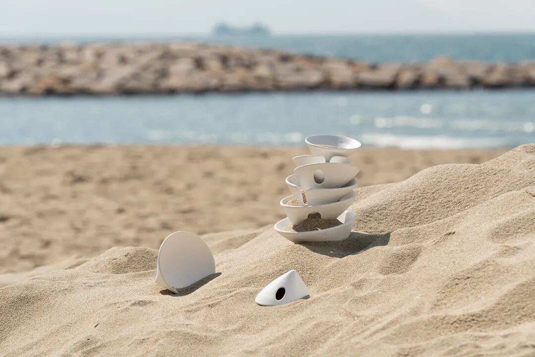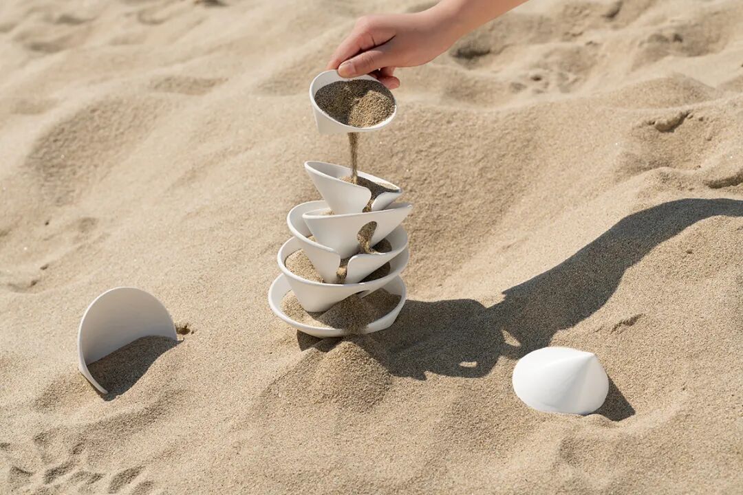 就好像堆叠在沙滩上贝壳一样。SHELLY是贝壳形态的沙滩游戏玩具。每一个贝壳大小不一样,上面的洞大小和形态也不尽相同。当你拿起贝壳时,你可以感受略微不同的沙的流动感。