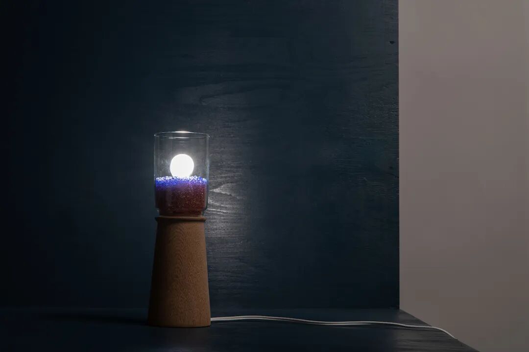 在海边,空气相对于陆地更潮湿,有独特的触感。SUNSET BEACH是空气湿度可视化的灯。‘砂’吸湿后会从海一样的蓝色,变成如同夕阳染成的红色。而当‘月亮’亮起(有一定热量)时,月光会铺在沙滩上,让‘砂’又回到蓝色。
