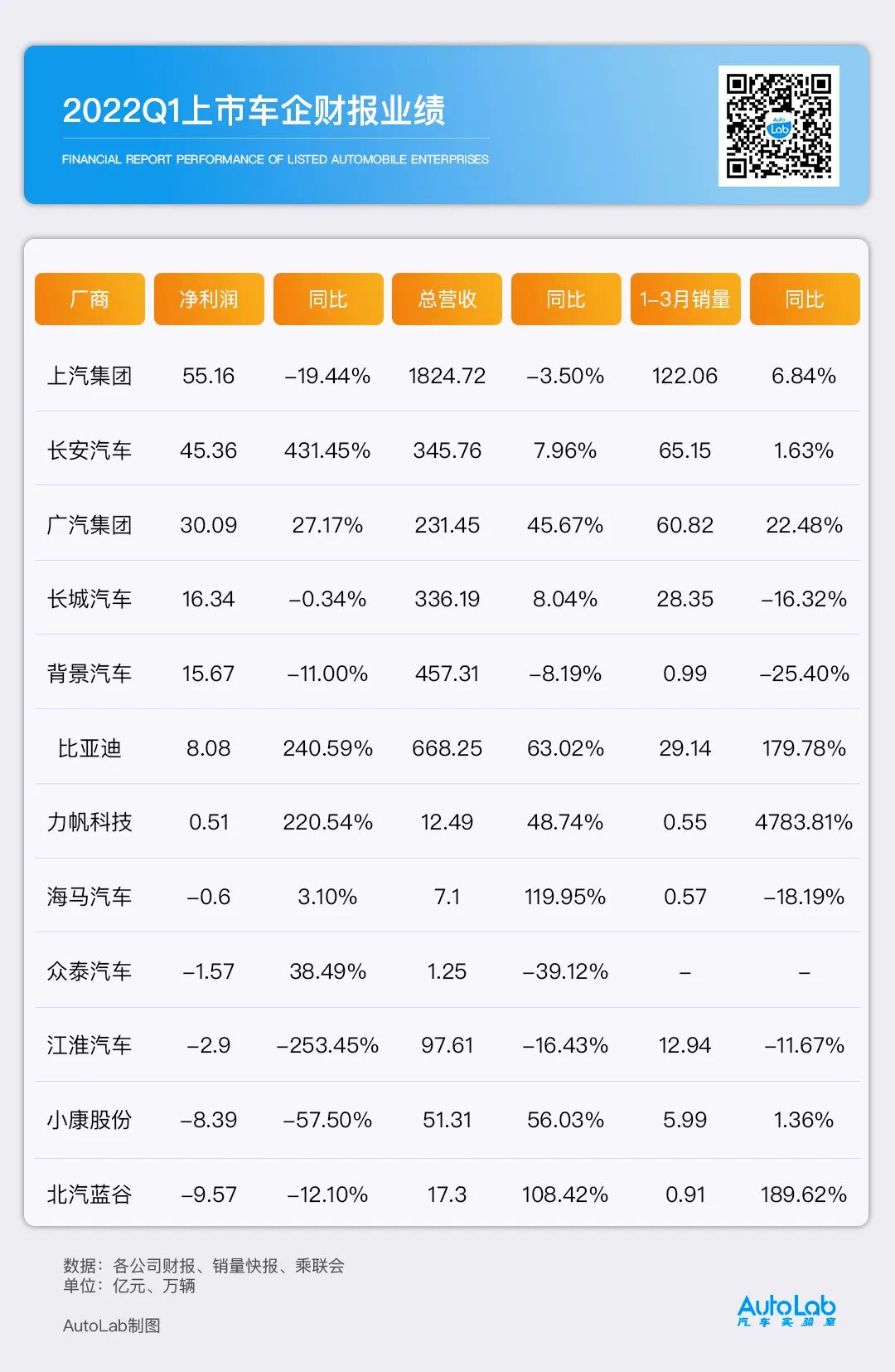 看2022年Q1以来的数据,有一家公司的业绩可以说是靓丽风景,这就是“长安汽车”。长安汽车净利润同比增幅真是亮瞎了。