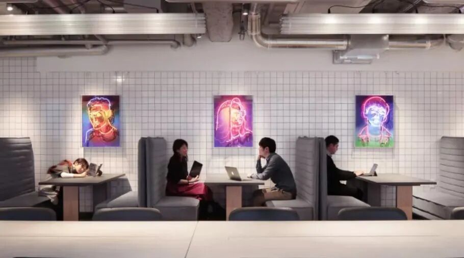 比如位于东京涩谷的Andwork就利用了一个酒店的一层的空置空间,改造成为一个小型的共享办公空间。办公人员不需要入住酒店即可使用酒店提供的一些设施和服务,比如淋浴间,休憩室,餐厅。地处东京最繁华的涉谷也自然为Andwork吸引更多的年轻人,这些新生代的年轻人不止可以在Andwork提供的活动,比如免费啤酒夜,社交互动,也一定程度上带动了周边的餐厅和零售。轻快时尚的装修风格结合多样的付费模式,既契合了东京年轻人的喜好也为他们提供了更灵活的办公模式。