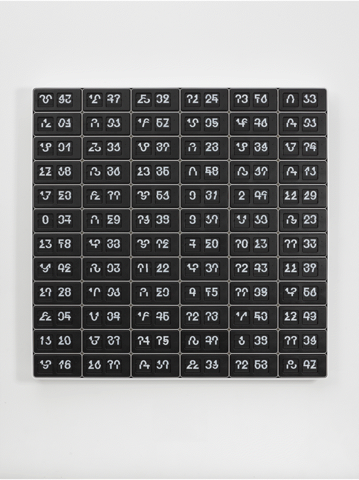 达伦·阿尔蒙德的作品《完美时间》将时间本身转化为一种不断更新的无法破译的语言。时间对阿尔蒙德来说时间都是非常抽象的。他在这件作品中以卡格式的严谨设定将每一分钟精确的改变。这样无厘头的荒谬脚本拥有着迷人的力量:一种被遗忘的语言或古老的智慧,一种与生俱来的普世沟通,以看似随便及敷衍的机械方式展开着。