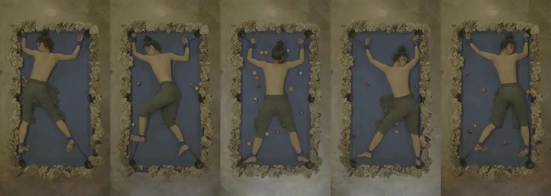童文敏作品《海岛》用珊瑚在台球桌上围一个海岛,用受限的身体,触碰台球入洞。童文敏的创作常常聚焦于外部环境与个体感知的交叉地带,通过看似背反逻辑的行为,激发微妙且具启发性的行动及其视觉诗意。
