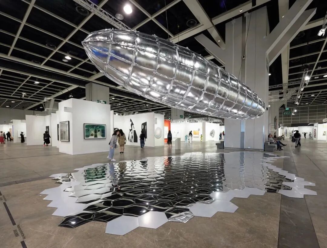李昢作品《愿意变得脆弱—金属气球V3》是以兴登堡号飞船为原型创作的。起初,兴登堡号是用于跨大西洋载客、货运的目的而设计的,后也曾被用作散发纳粹宣传单的交通工具。它的建造和使用曾预示着航海旅行黄金时代的即将到来,但飞艇日愈浓重的纳粹色彩,及其以空难落幕的悲惨结局。最终宣告了飞艇时代的终结。李昢通过对飞艇外形的还原,来隐喻看似美好,散发光芒的事物,都可能在瞬间倾倒。