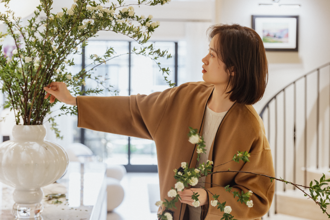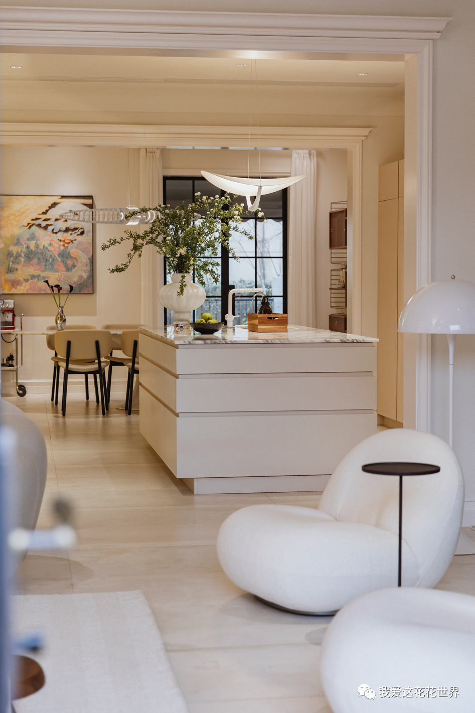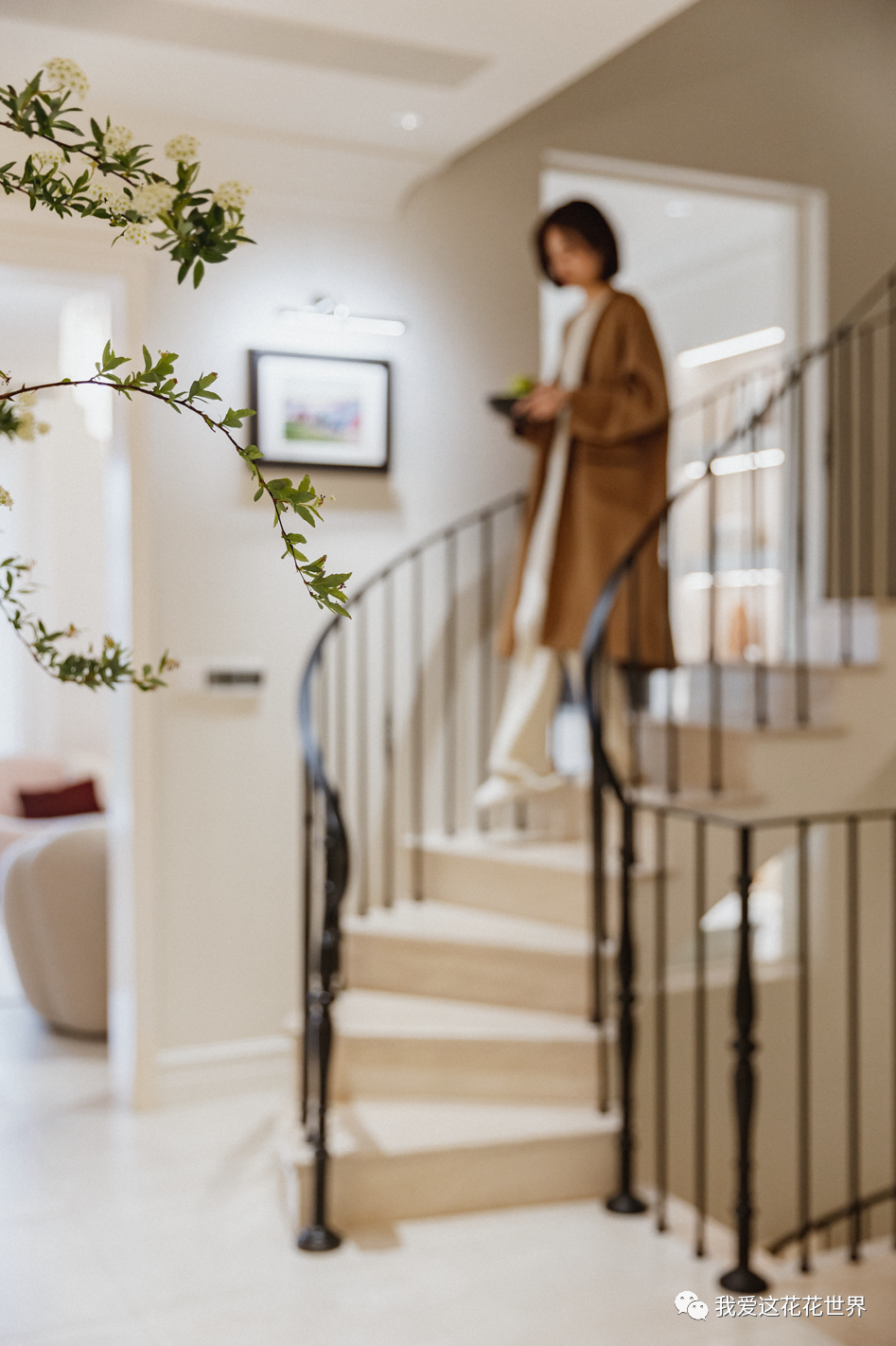 Wini是个重庆妹子,她把家装修成了现代法式风,大面积的白色和米色,搭配纤细的黑色老钢窗和旋转楼梯,集法式的浪漫、北欧的极简舒适于一身。