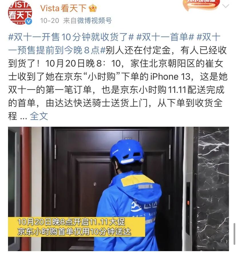 也就是说,你如果在11月1日0点付款,最快早上8点就能收货。