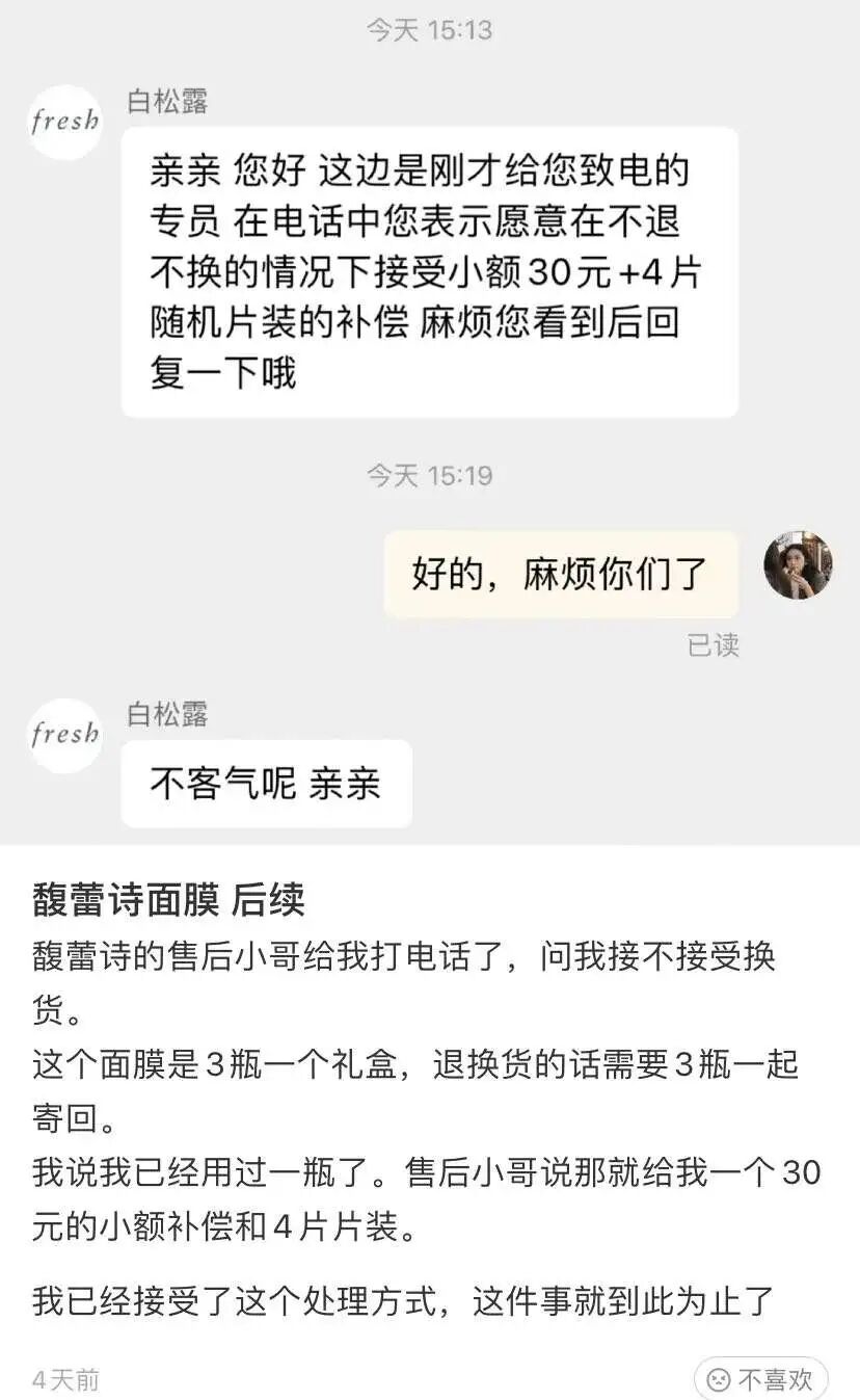 围绕馥蕾诗的投诉维权贴席卷整个社交媒体,官方应该也是感受到了压力。