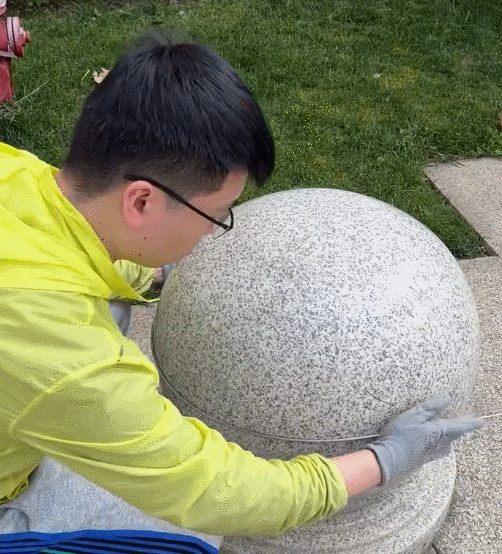 先去铁锈,再按老规矩找石墩打圆儿,最后喷漆。