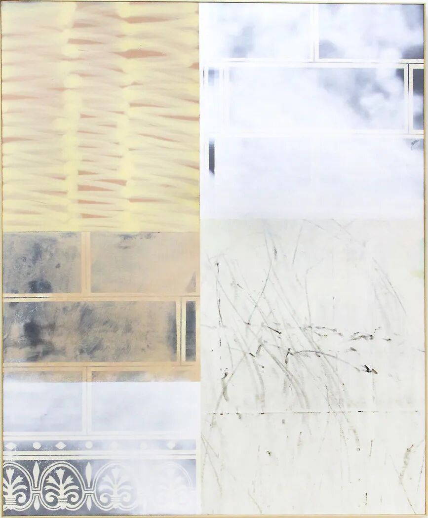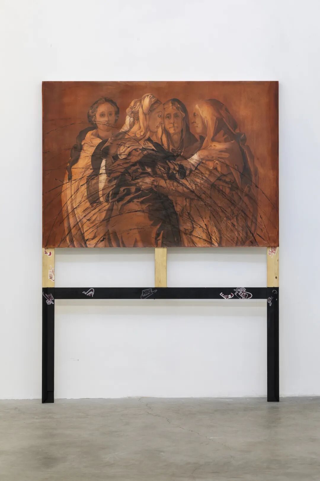新斯科拉,2018 壁画底漆,丙烯酸,油,滑板痕迹,沥青,画布上的污垢 220 x 180 厘米
