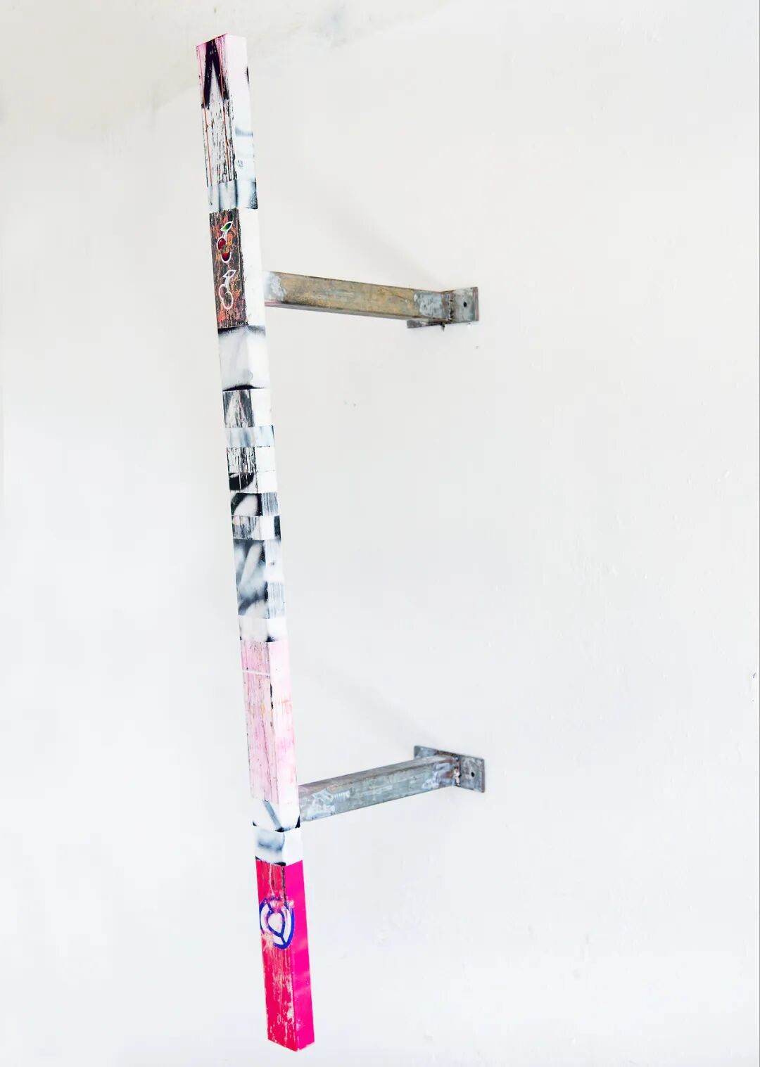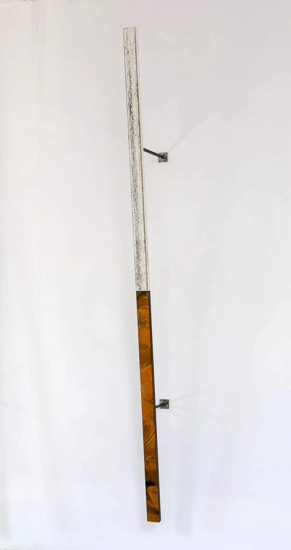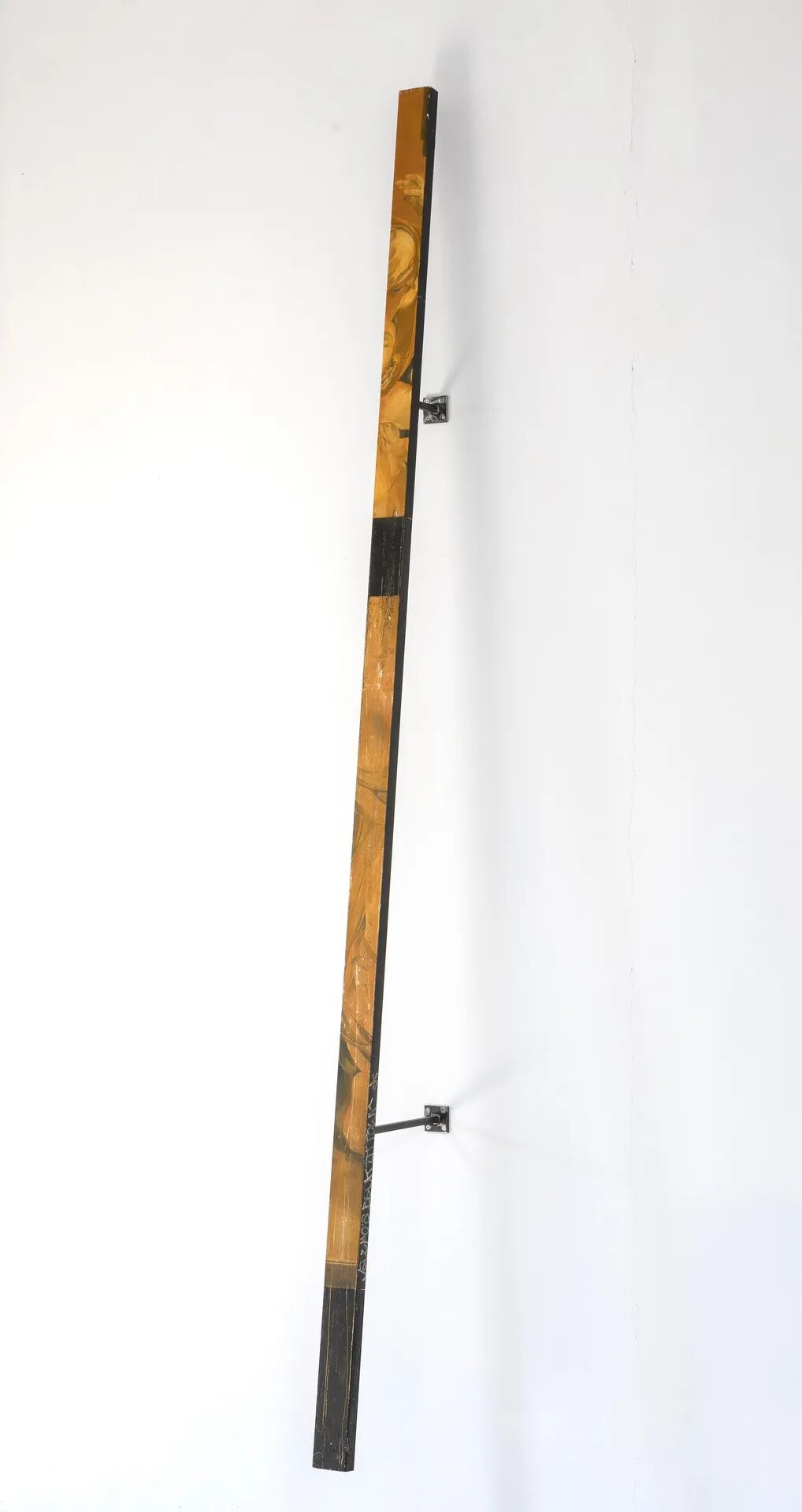 雅各布回到镇上 #2, 2018 铁底漆、油漆、铁条上的滑板划痕 300 x 8 x 4 厘米