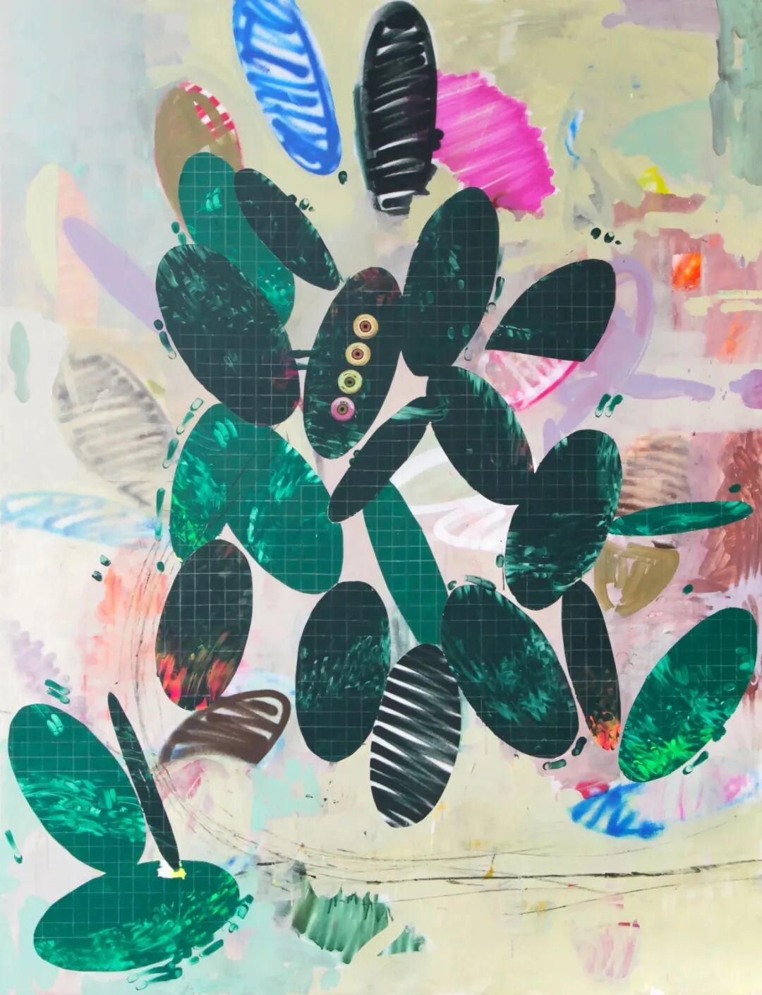 仙人掌研究 (2), 2019 壁画、丙烯、画布上的记号笔 130 x 160 厘米