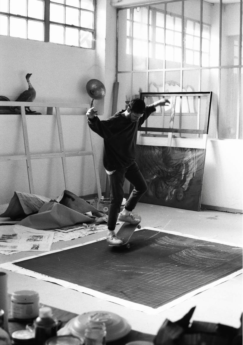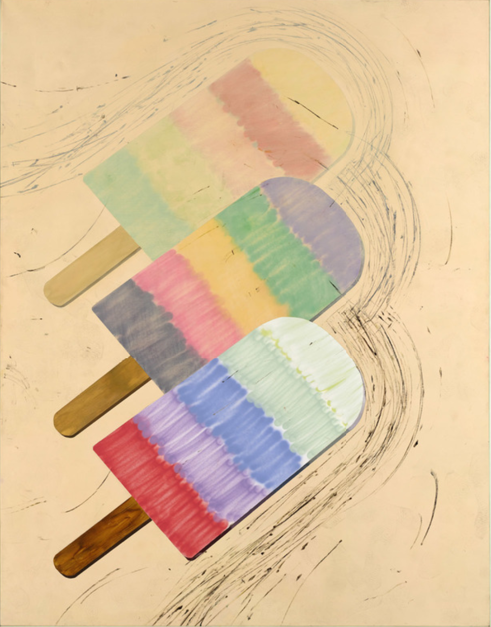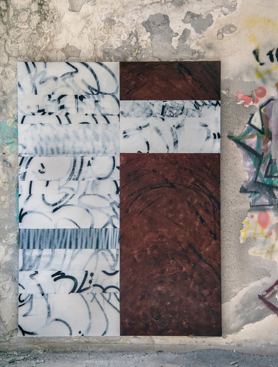 奥利冰棒,2020 喷漆、壁画、滑板痕迹、帆布上的沥青 220 × 170 厘米
