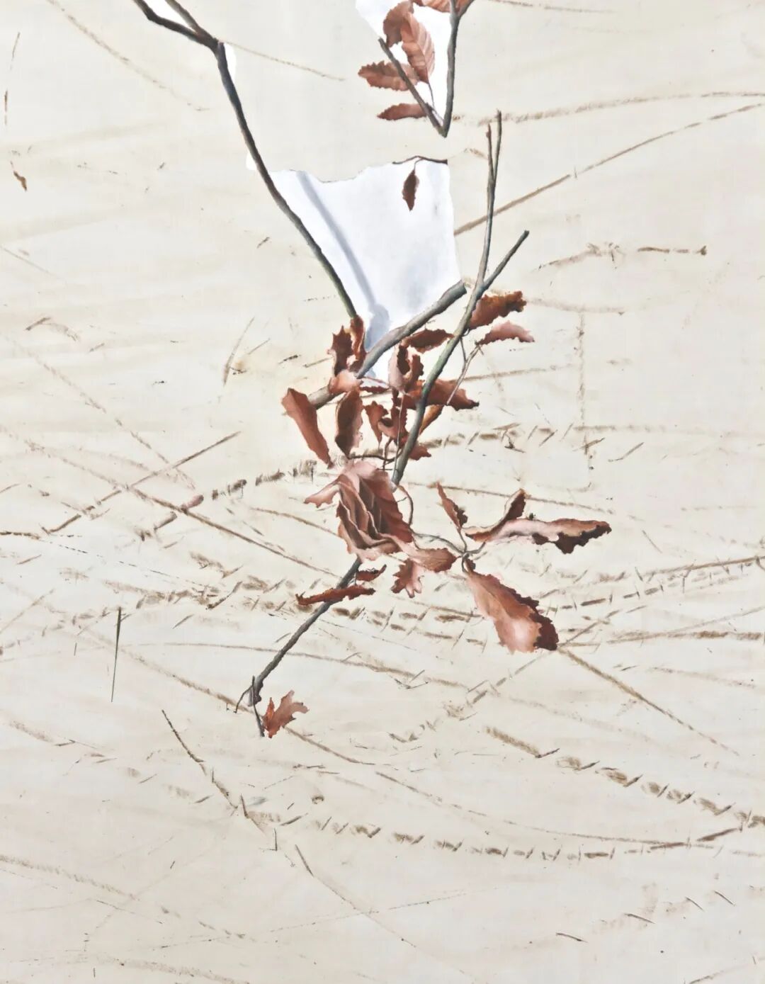无题(与月桂树),2016 油画,喷漆,滑板划痕,布面沥青和泥土,170 x 120 厘米