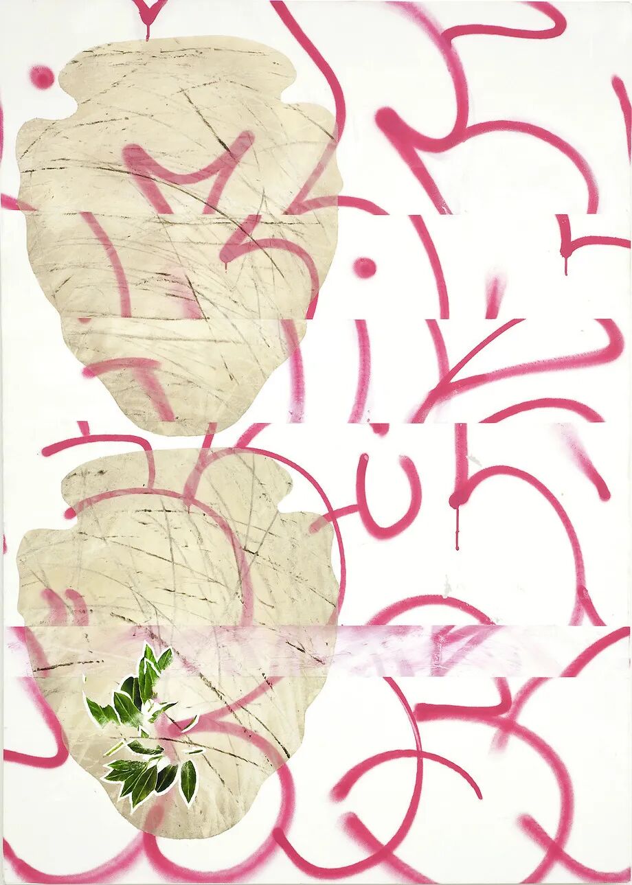 巨石疗法,2020 艺术家框架中画布上的油、丙烯酸、喷漆、滑板标记 85 x 64 厘米