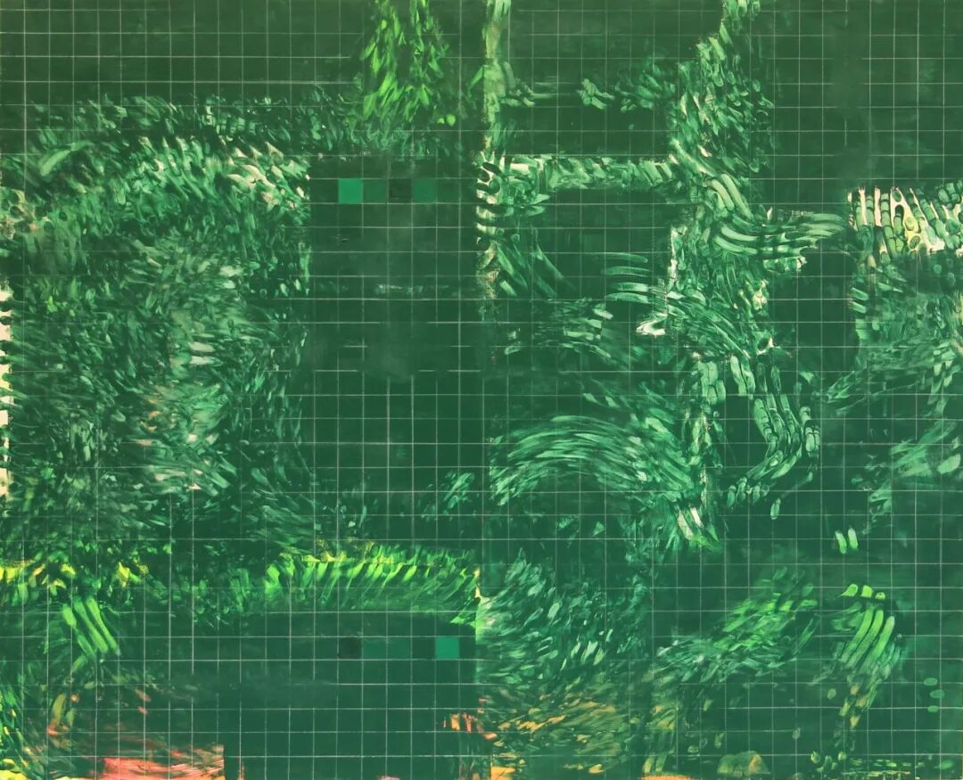 指法 #14(疟疾),2021 年 布面丙烯、喷漆、油画和手指印 130 x 160 厘米