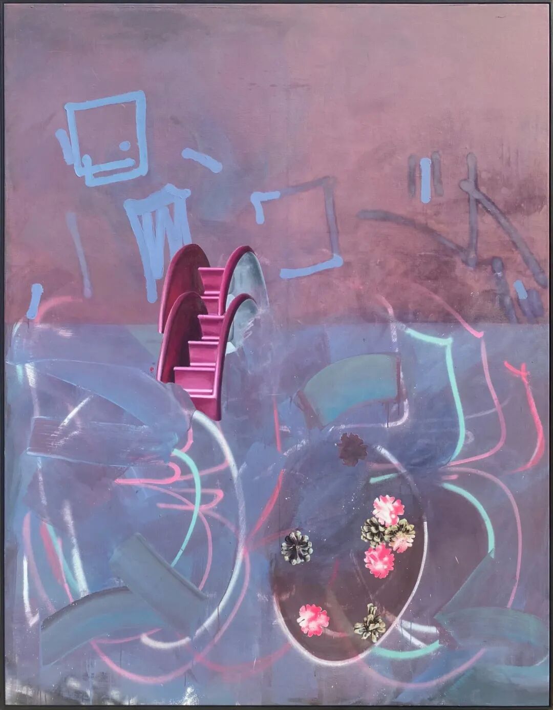游乐场 #15(错误的希望),2019 壁画、喷漆、油画、画布上的铅笔 220 x 170 厘米