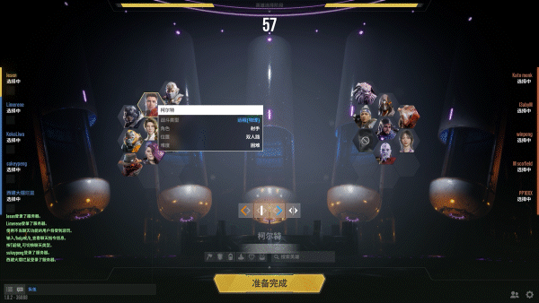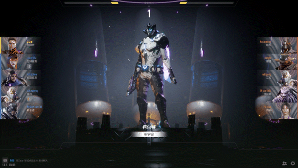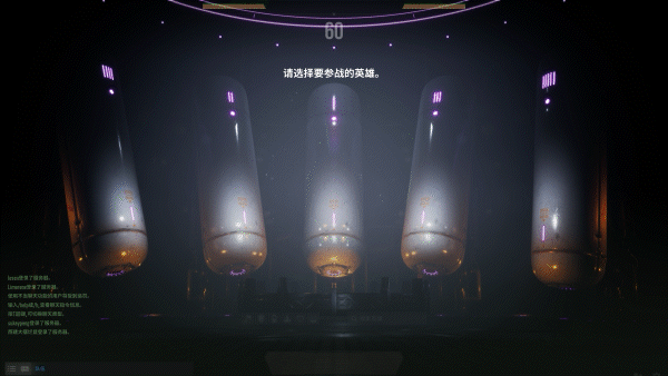 随着它们落定,前景的界面出现,在界面的左右头像集合体中,玩家就可以选择商场的英雄了。此时背景的舱体会打开。