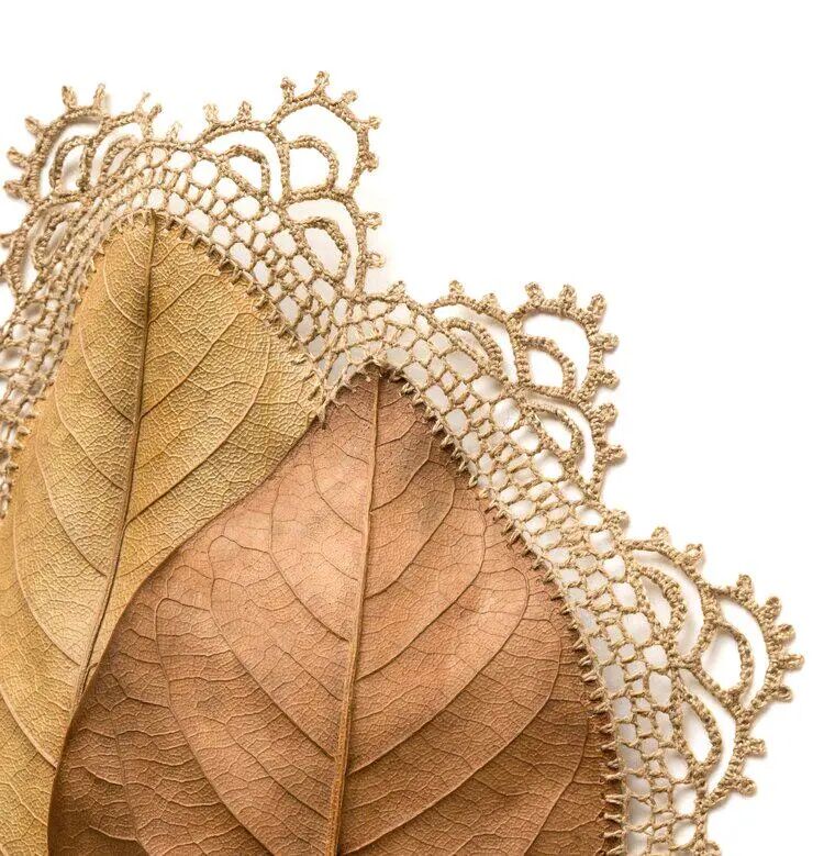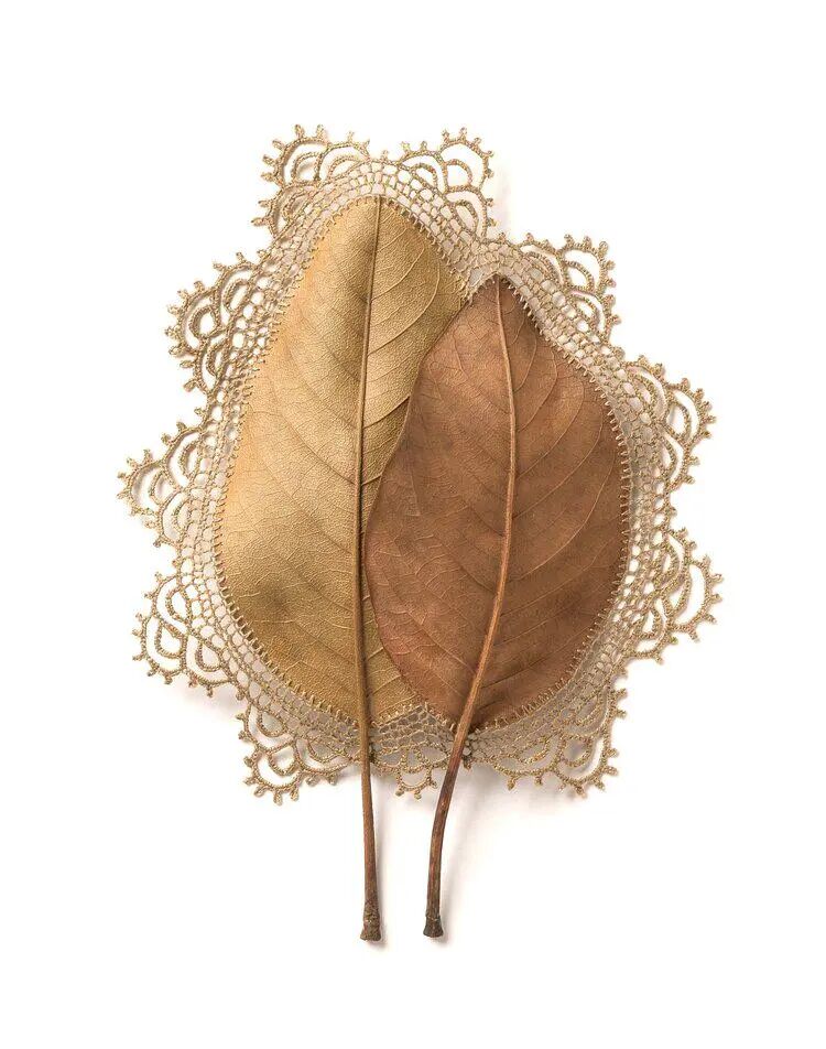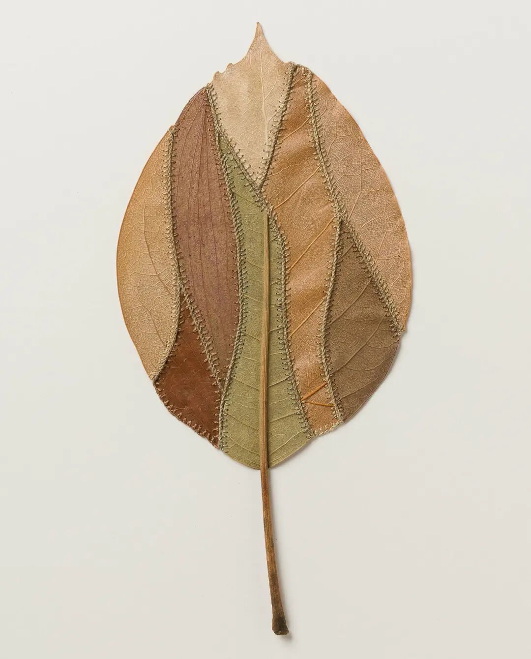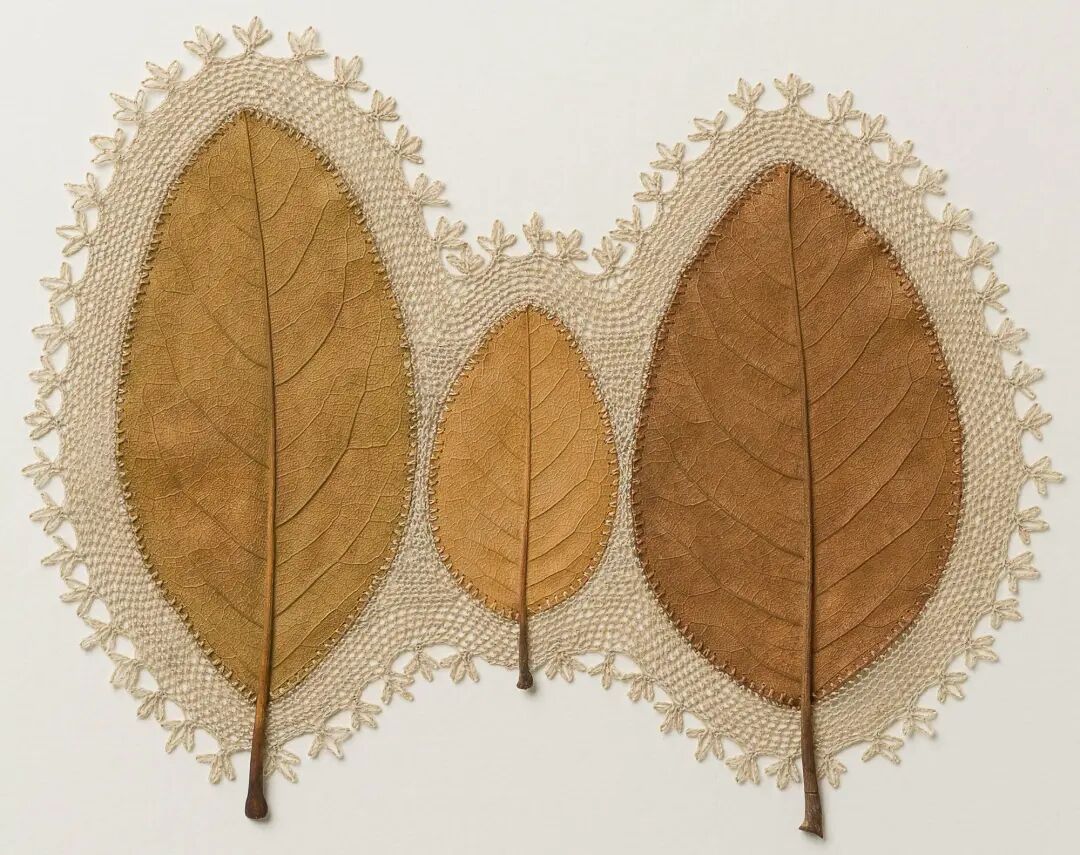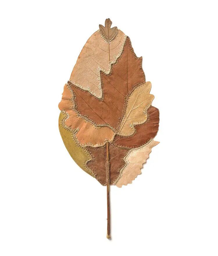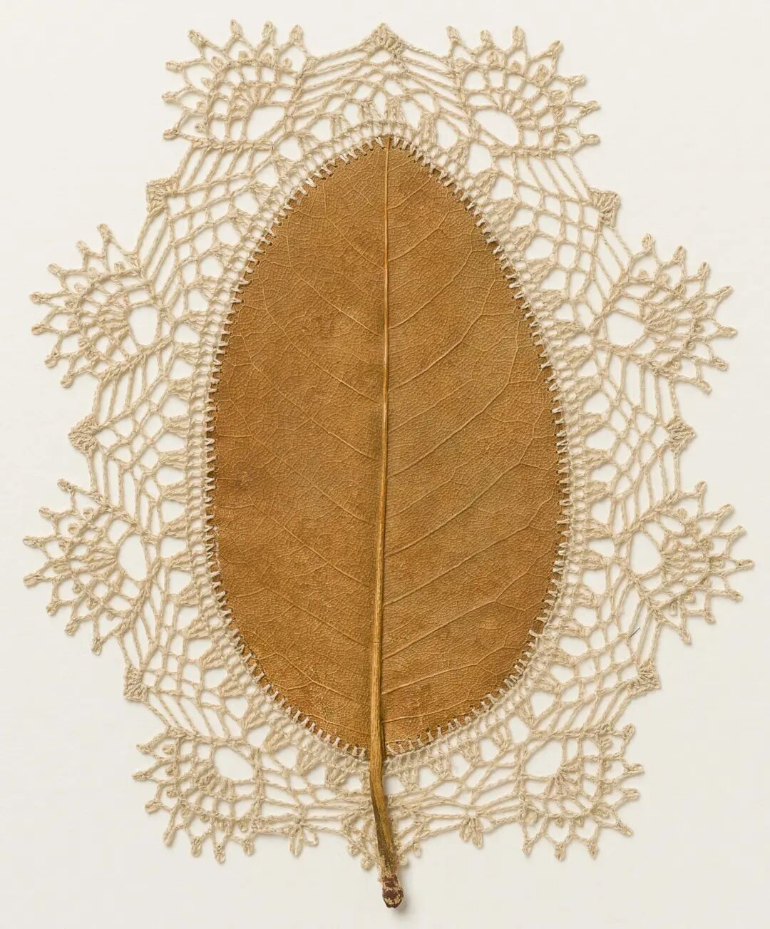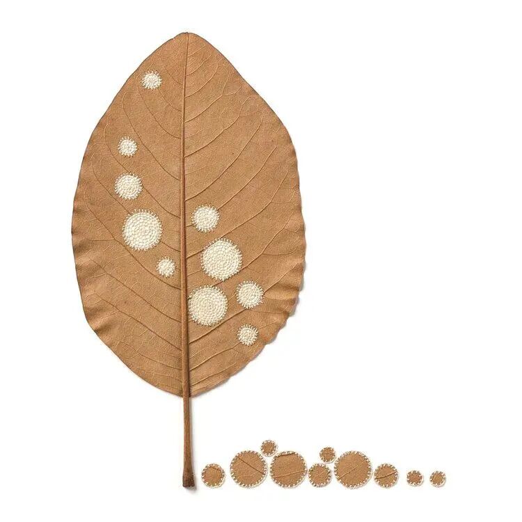树叶无论对于谁来说,都是极其平常且普通的事物,利用这种普通事物制作艺术作品的艺术家并不多见,能将作品制作得像苏珊娜·鲍尔一样充满艺术性的更是少之又少,树叶是苏珊娜·鲍尔艺术作品中的主要材料,除此之外,还要添加上刺绣工艺,两者结合下就诞生出这组富有艺术性的作品。