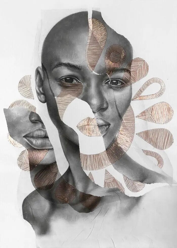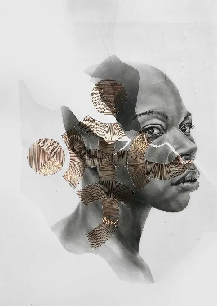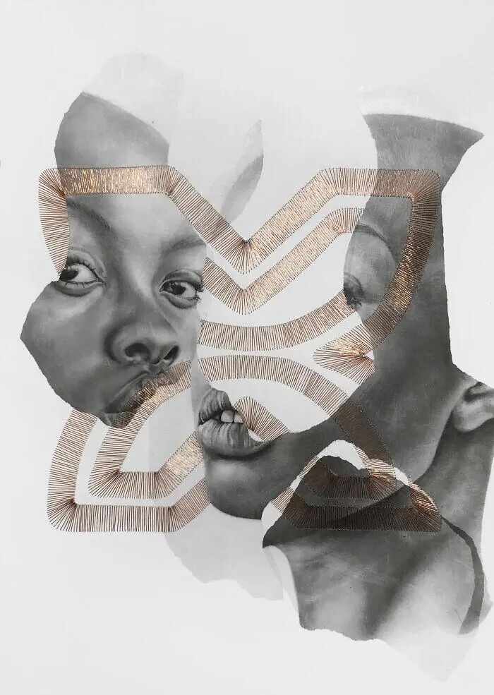 直到她拿出了针和铜线,再一针一线地把它缝起来,人们脸上的问号更明显了,其实,马里亚纳·圣·马丁的撕裂肖像画作中有乾坤,艺术家用铜线缝合的方式,让画面中显现出一个特殊的符号,这些不同的符号都承载着非洲人民的智慧,每一个都代表着不同的意义。