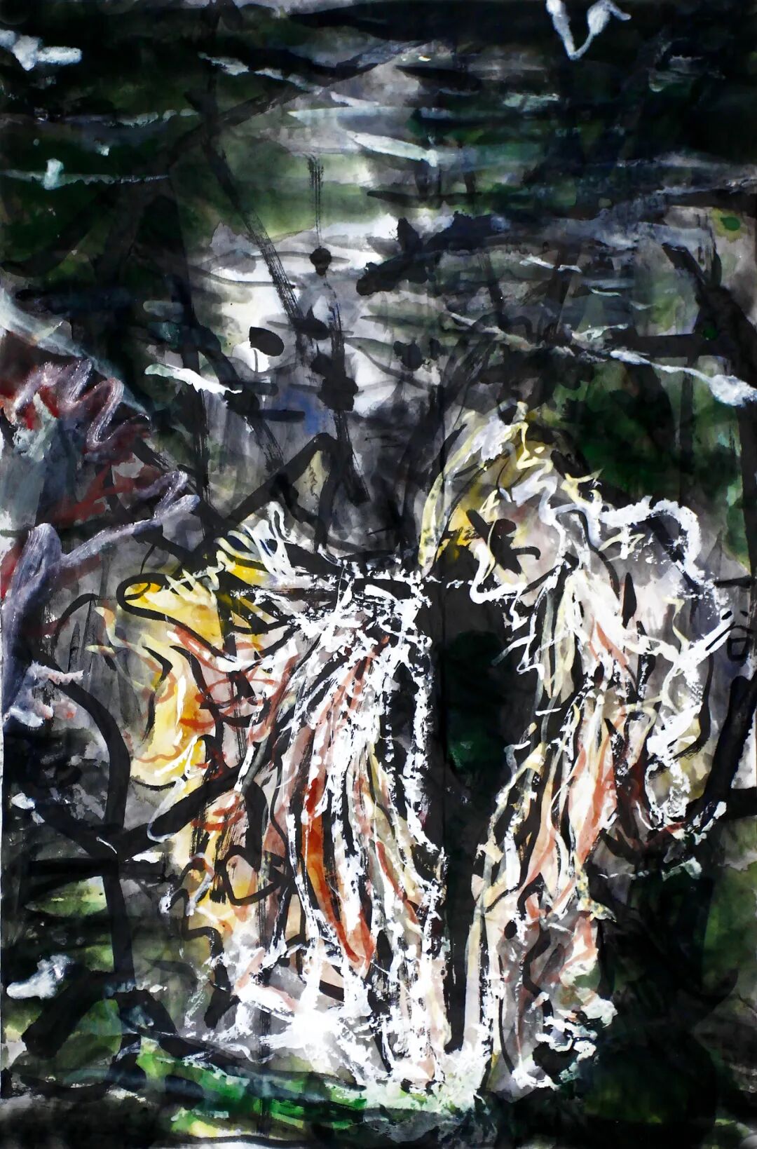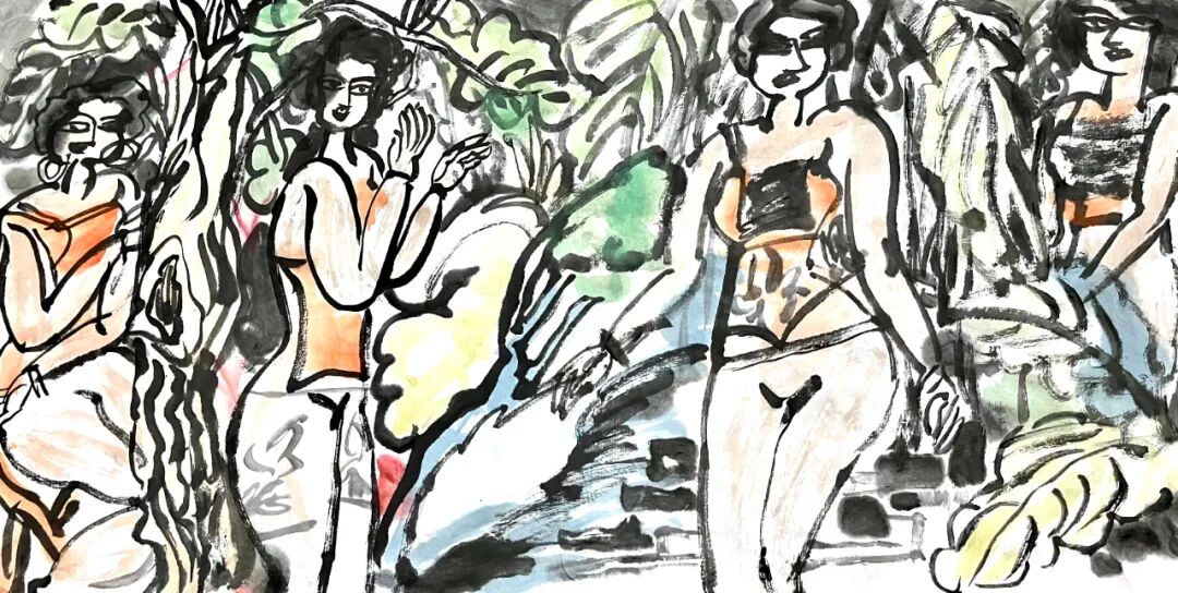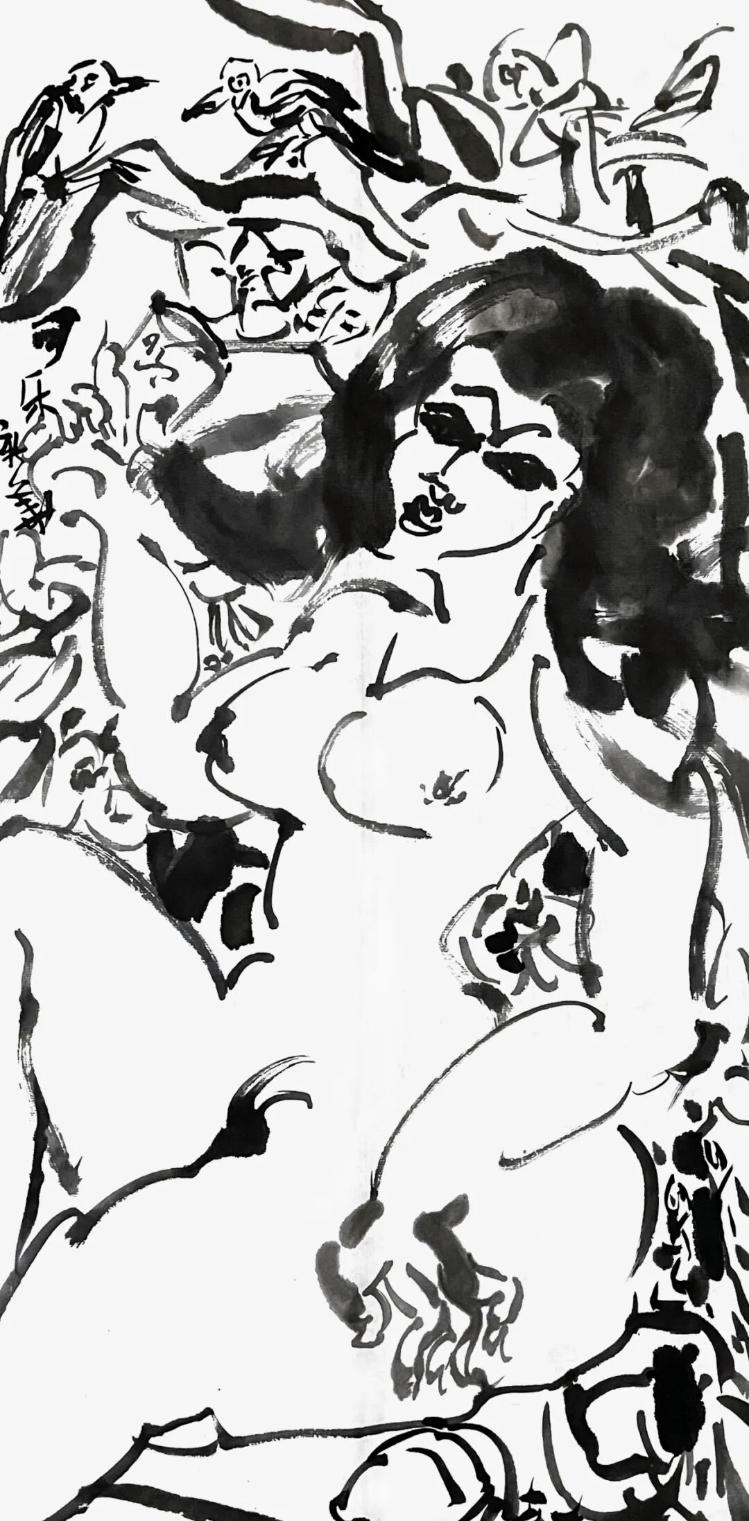 对话人2:新华兄的线条非常自由。是中国的线性表达,书法也很好。