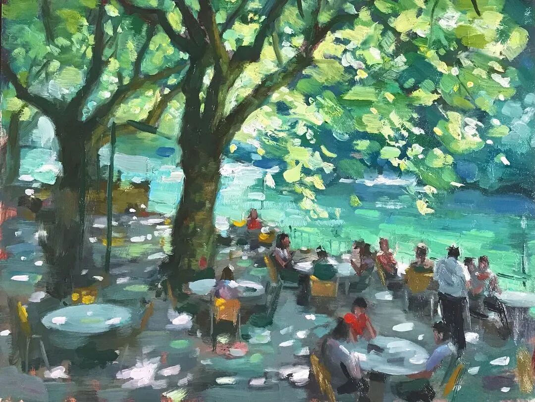 Aldo Balding喜欢在阳光直射下作画,更喜欢在色调上“吝啬”,一次使用不超过五六种颜色。他的灵感、想法和主题可以来自他所见过的东西,比如咖啡馆的男人,过马路的女人。