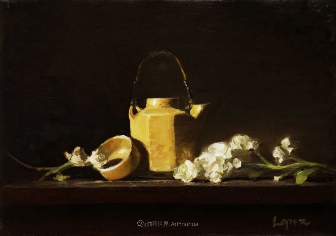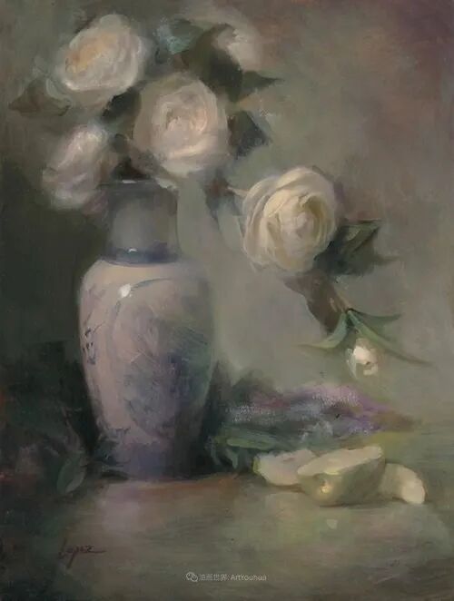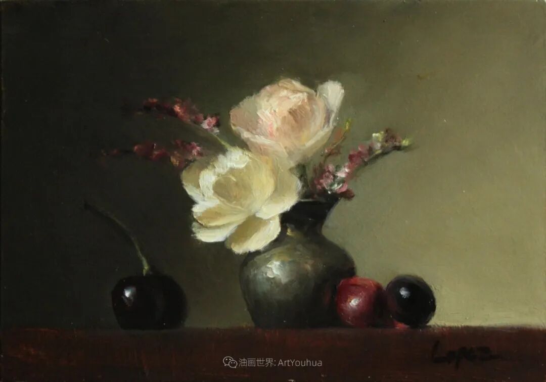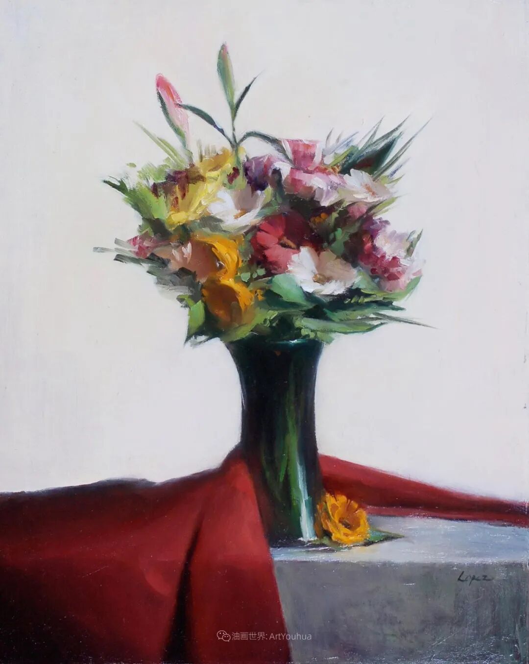 /花卉静物,美国女画家莉亚·洛佩兹油画!