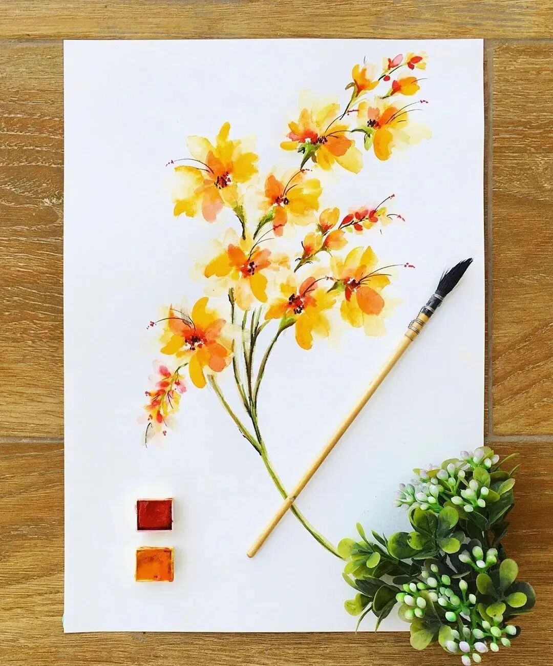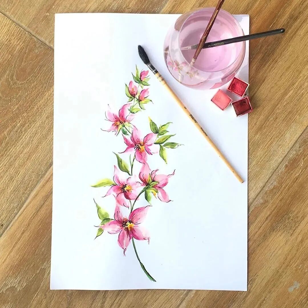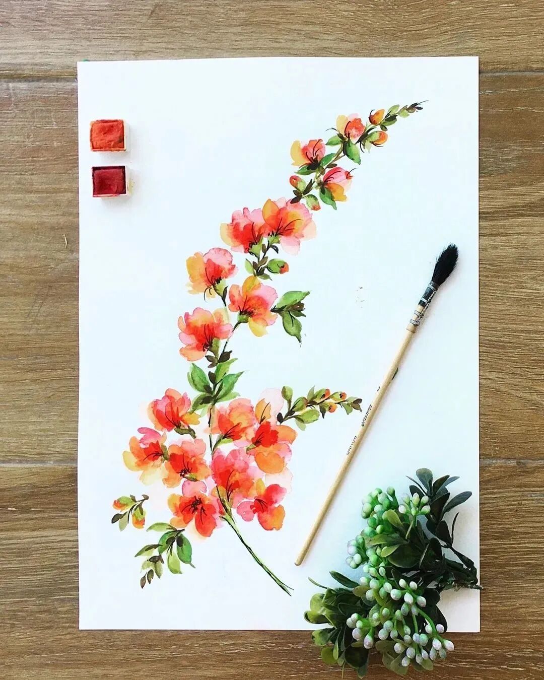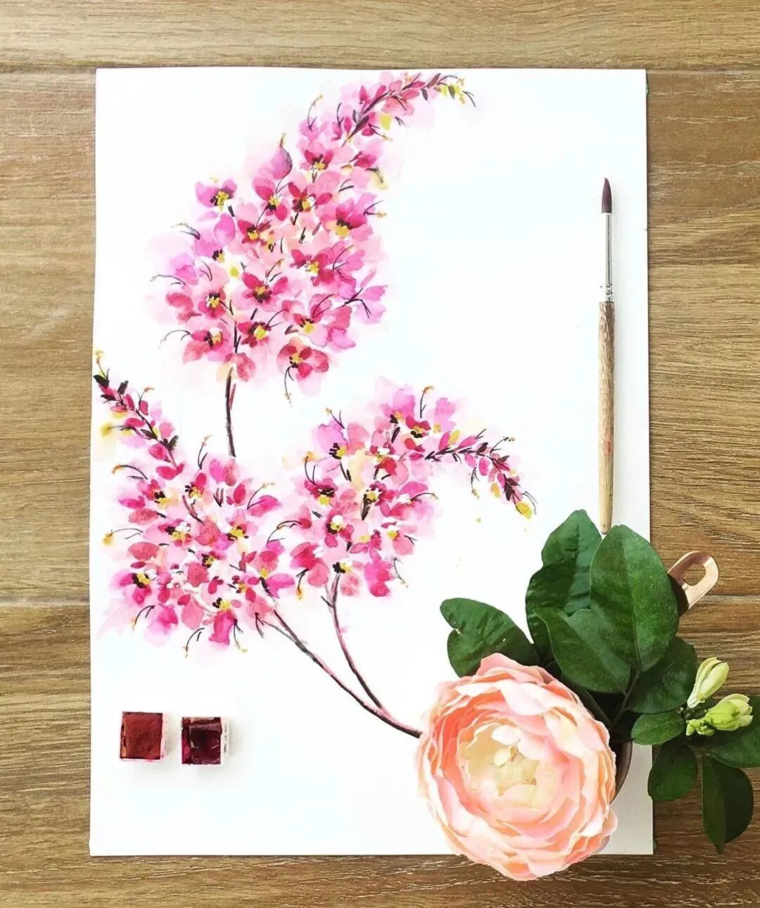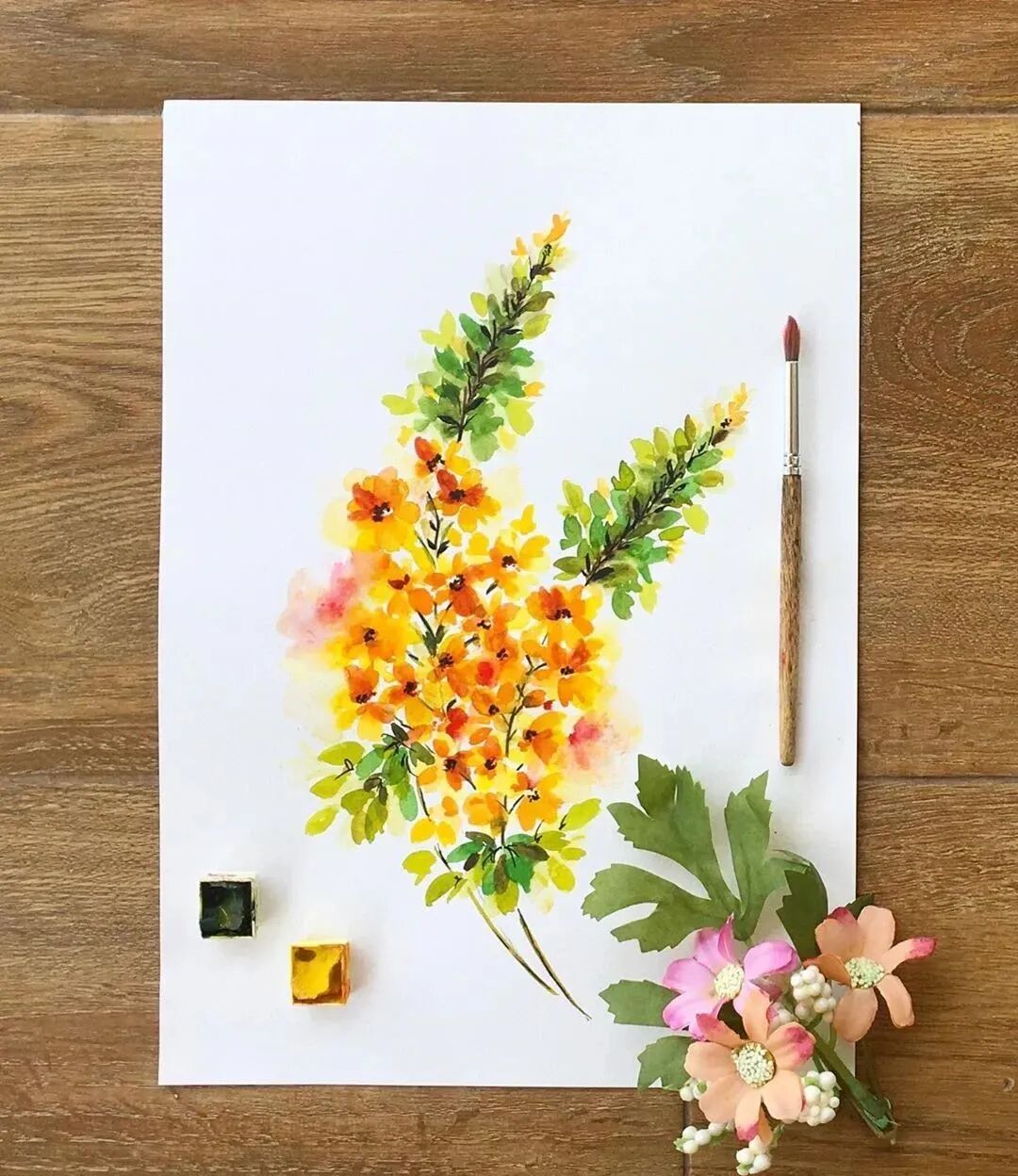 如果大家想要临摹的话,floramourbysonu画师用的是普通的细纹水彩纸,固体颜料,不过是透明度没那么高的水彩颜料,因为颜色大多是一次到位,且水痕明显。讲人话就是,工具很好上手,不用左顾右盼,快开干吧 !