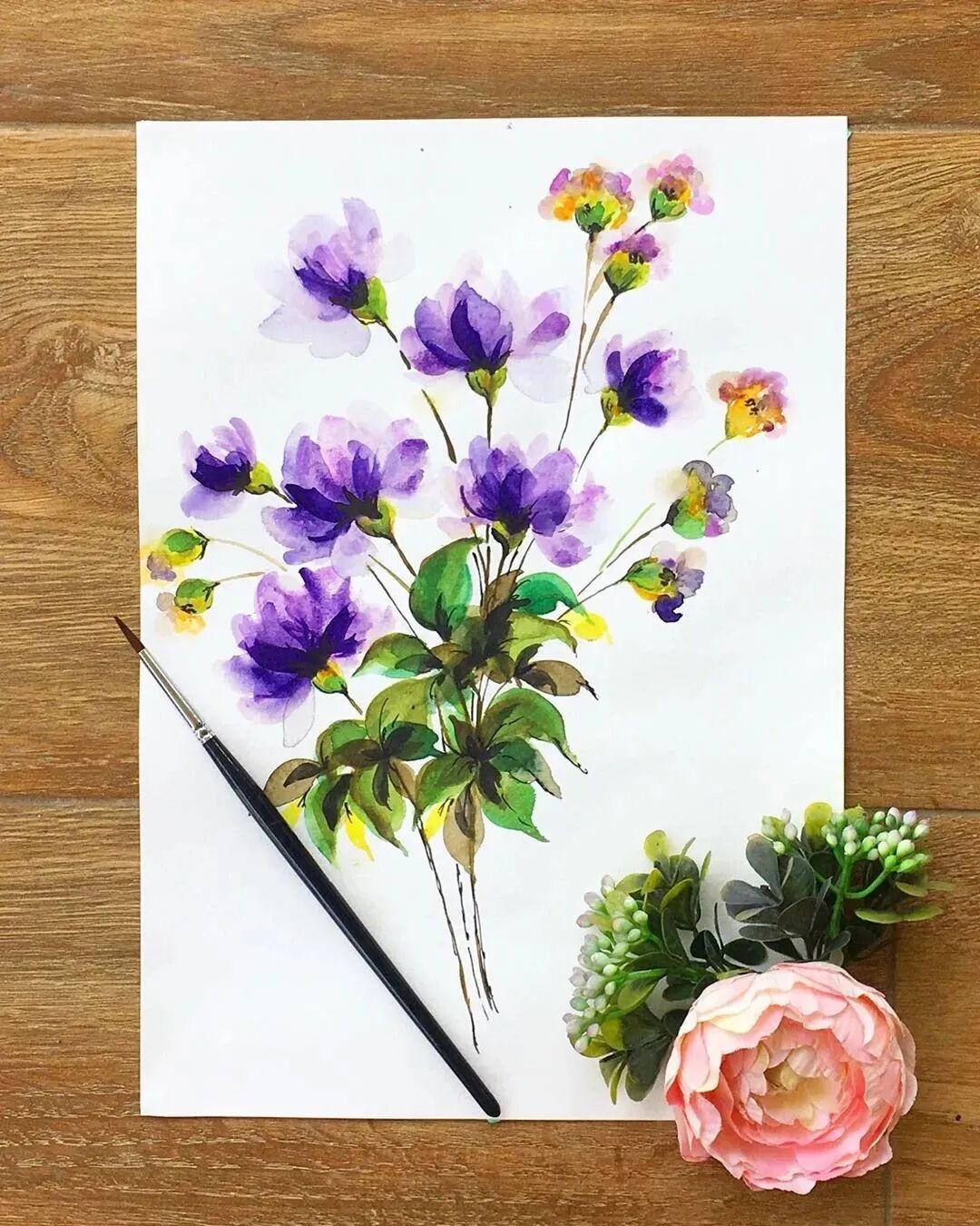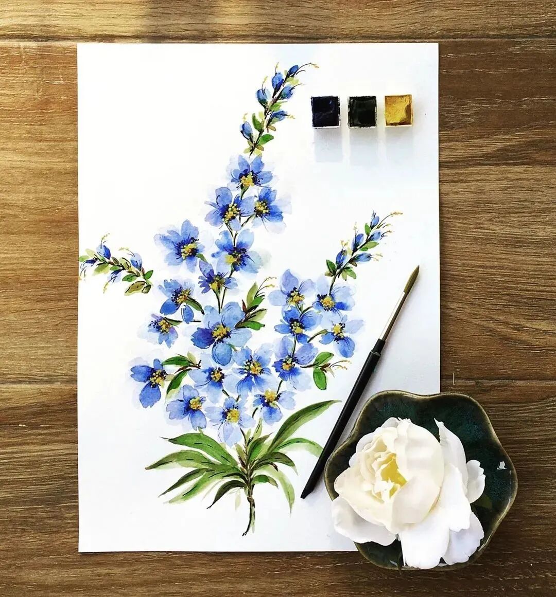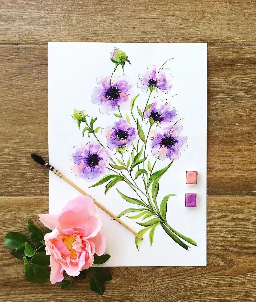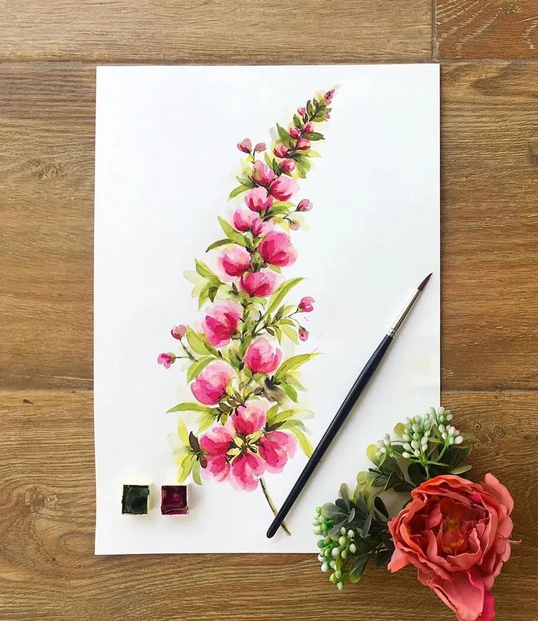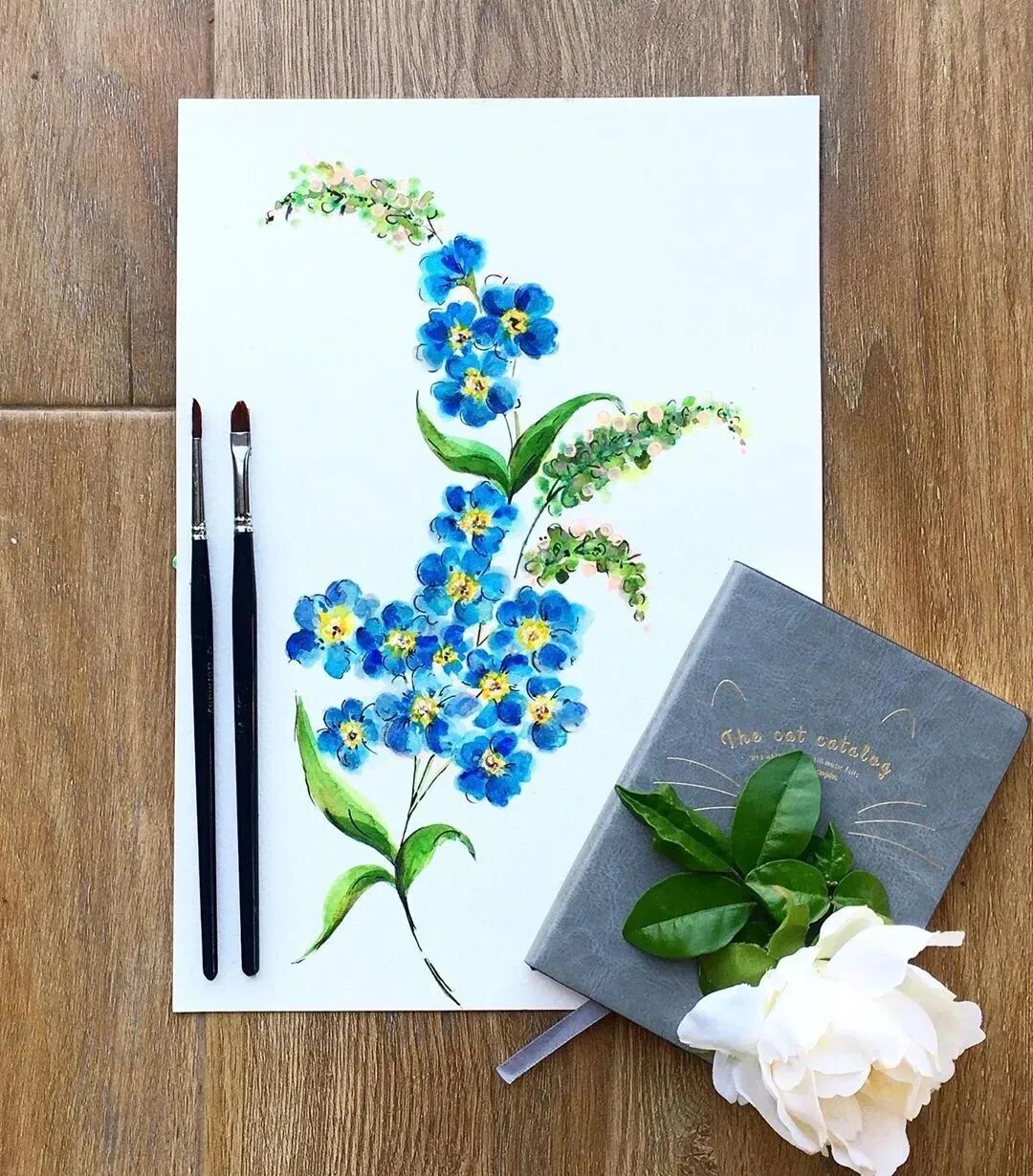 这位画师的作品每一张花卉都十分概括,简单的几笔花卉的感觉就到位了,容易让人产生一种我上我也行的错觉。而且每一张作品照片floramourbysonu都会精心的设计布景。或是一朵小花,或是几颗石子。