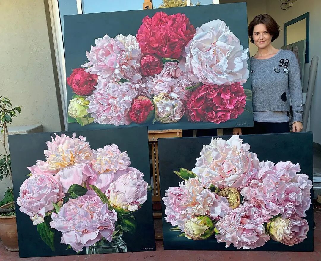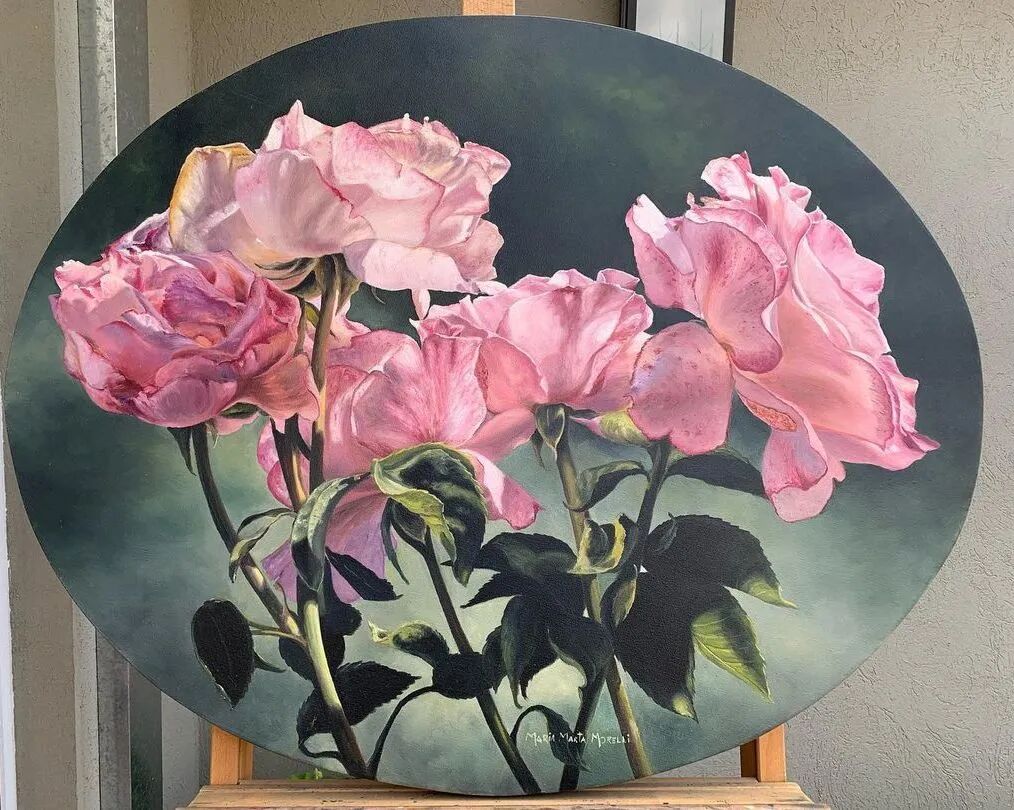 María Marta Morelli 擅长创作精致细腻的花卉油画,创作灵感源自大自然,尤其是代表青春、感性、柔情、绚丽、激情、爱情以及无止境生命的花卉最受她的青睐。其作品多以牡丹和玫瑰为主题,造型多为包裹的花瓣结构,通过缤纷的色彩和细腻的笔触结合现实主义风格,让观众可以在繁忙的工作生活中停下一小段时间来欣赏大自然中的遍地美景。