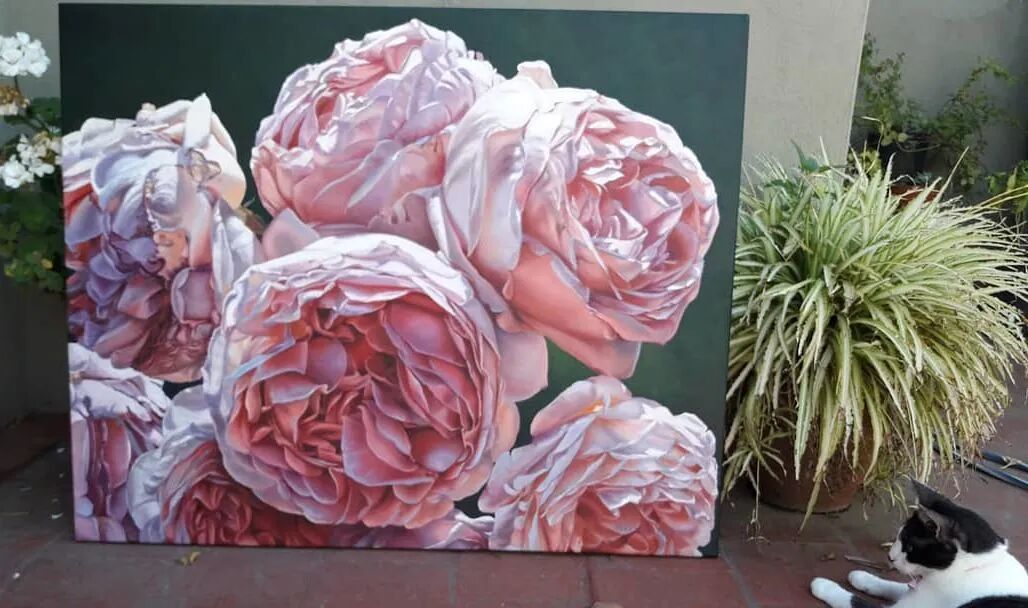 她说:“我通常画的花朵,如牡丹和玫瑰,具有包裹着花瓣的结构,像母亲拥抱孩子的手臂一样柔软,又像女人的身体一样性感。我喜欢把这些弯曲的结构想象成文艺复兴时期美丽的女性身体。我最喜欢那些颜色和形状各异的作品,花朵开始绽放,花朵开始凋谢,花蕾也变得更新鲜,展现了人生每个阶段的美丽。”