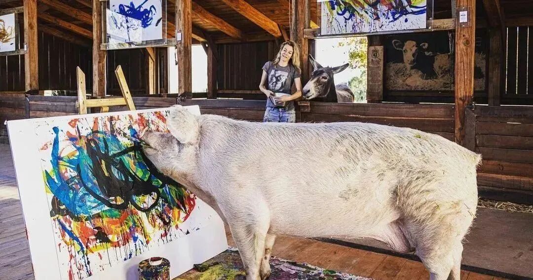 (导读:一头猪创作了400多幅作品,卖出的画作价值数百万元,最贵一幅卖了23万元。按艺术市场成就来论,99%的画家,不如这头会画画的猪。)