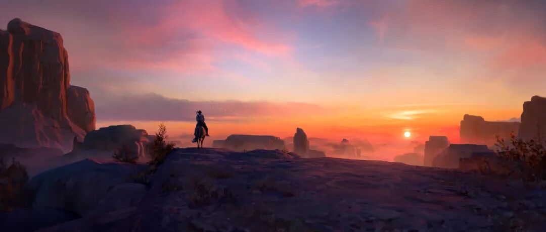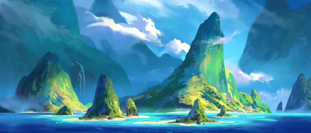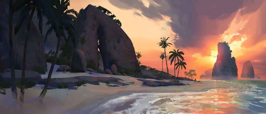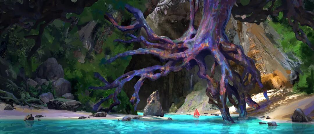 Gavin O'Donnell的场景作品无论是色彩还是光影都非常吸睛,画面干净通透,尤其是他笔下的天空,给人一种绚烂梦幻的感觉,而暗色调的场景整体氛围极强,空间层次感分明。