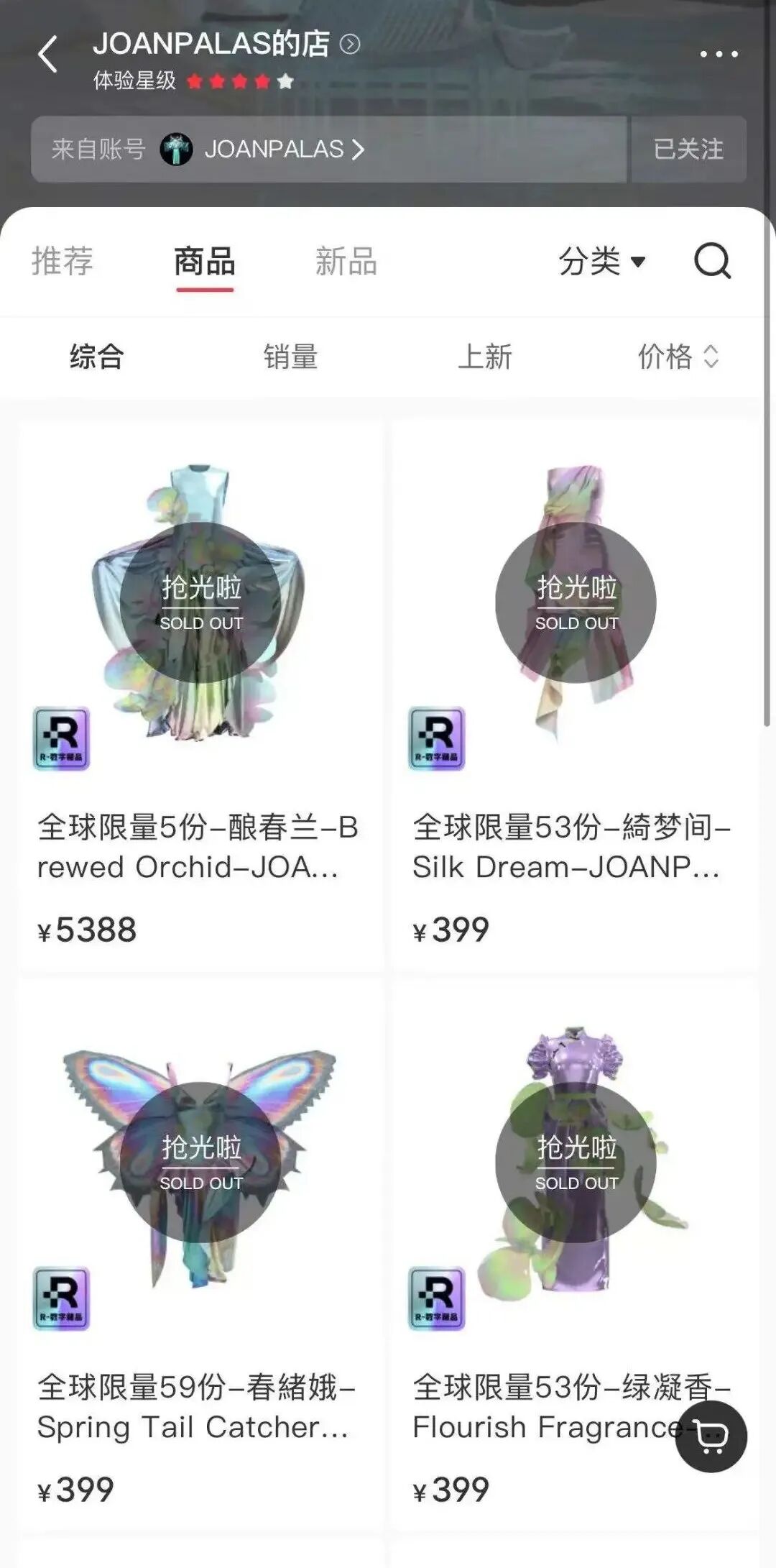 JOANPALAS主理人W : 虚拟时装的定价和设计思维和流程的复杂程度、品牌的理念和大众的喜爱都有很大的关系。